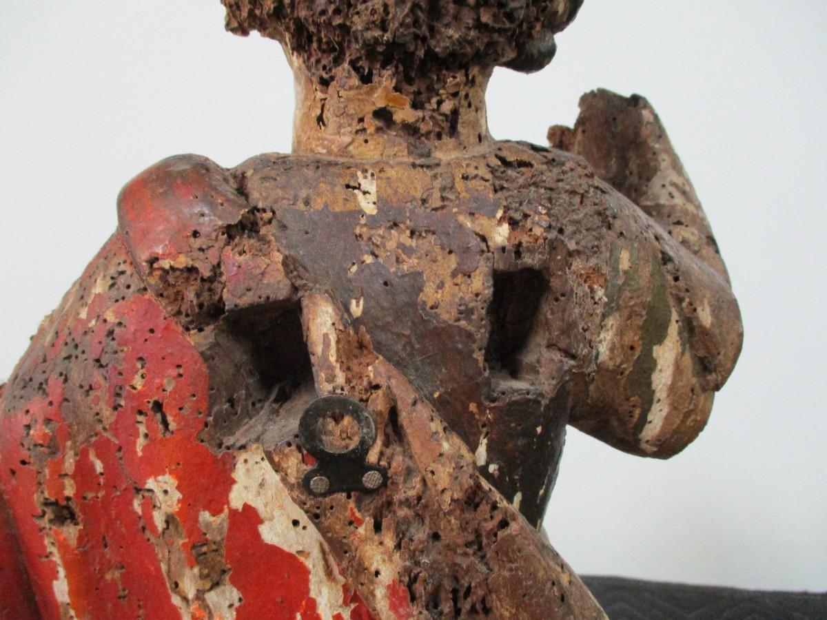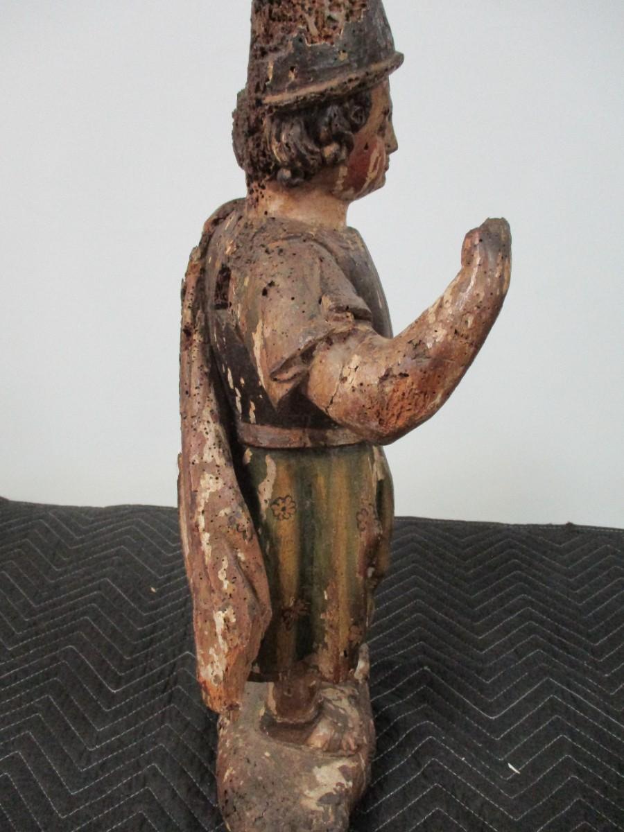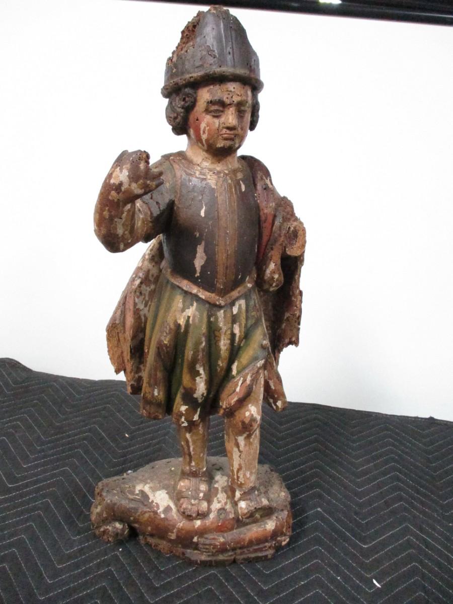 18th Century Hand Carved Soldier Or Hunter Statue