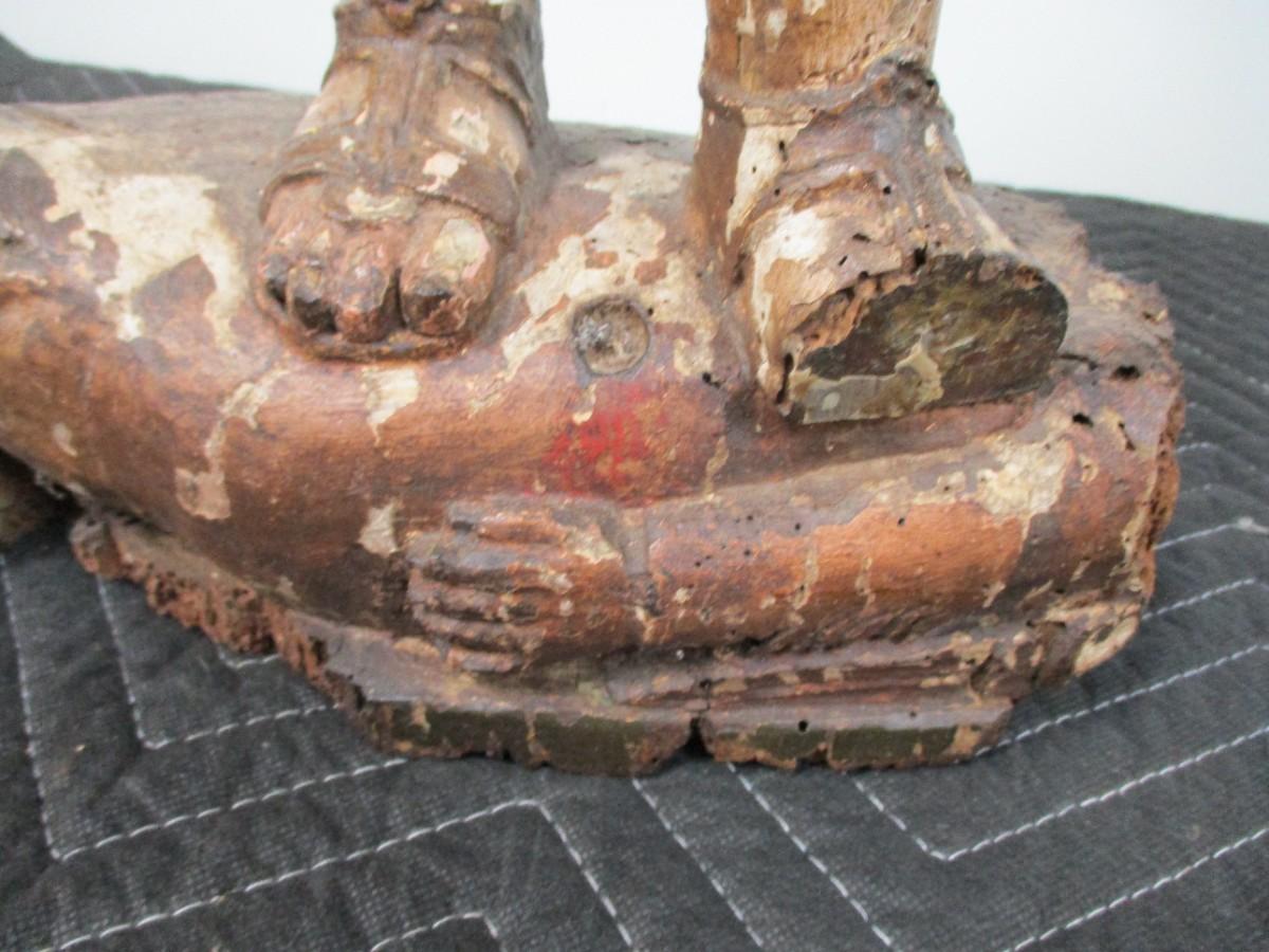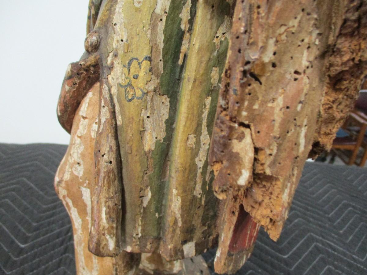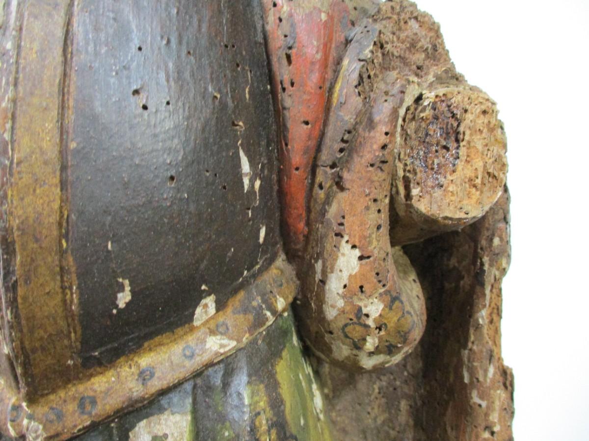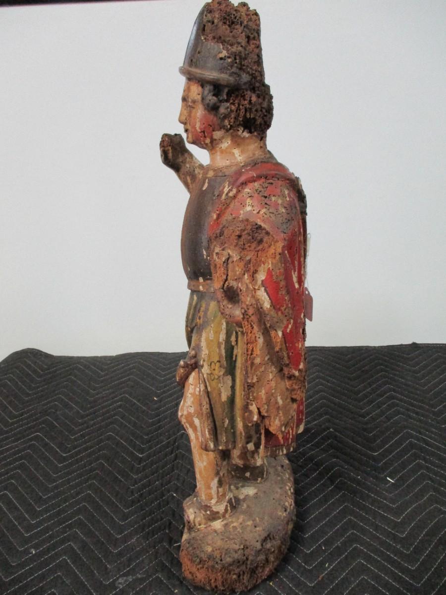 18th Century Hand Carved Soldier Or Hunter Statue has some damage as shown shipped by third party pack and ship facility only . No exceptions