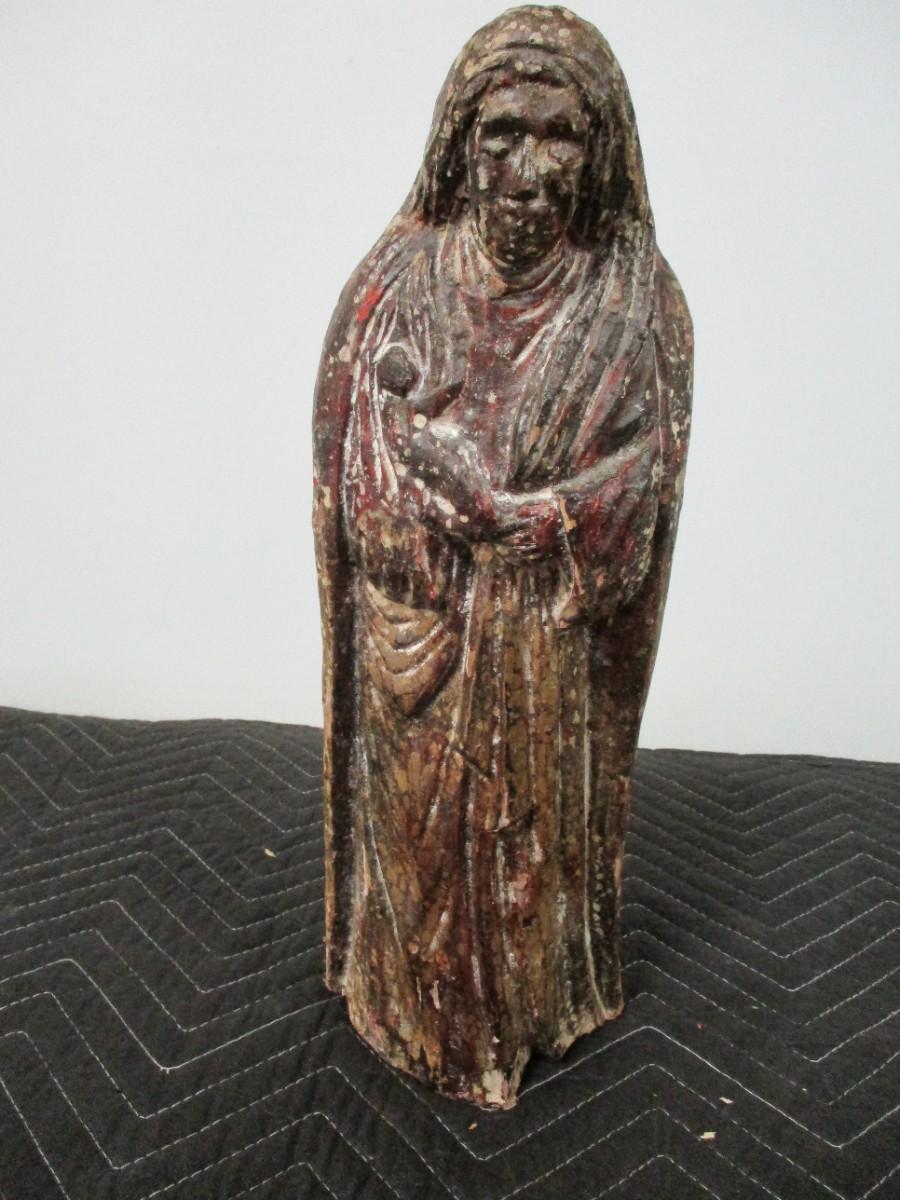 18th Century Carved Religious Icon Statue 17"