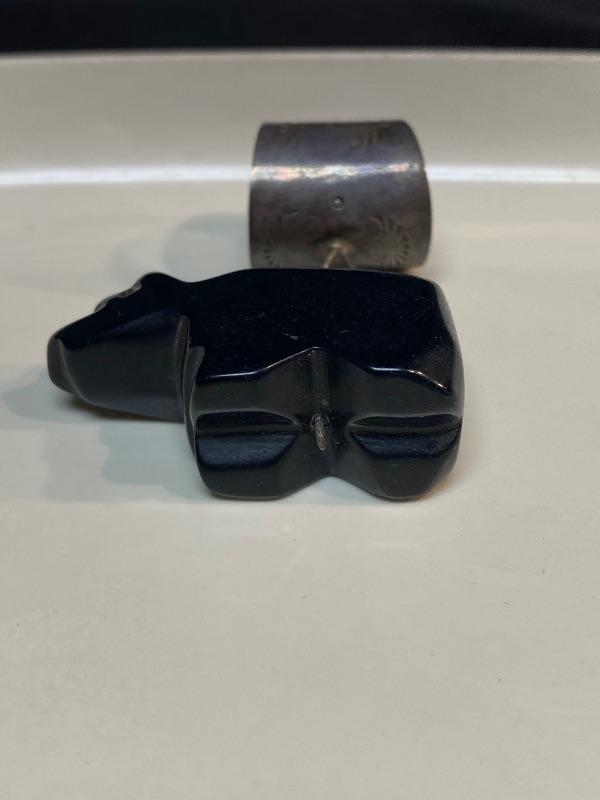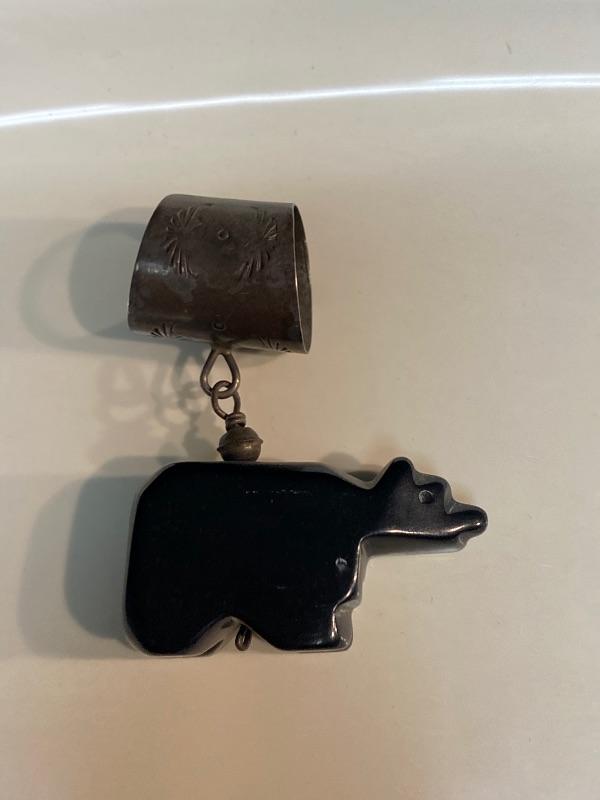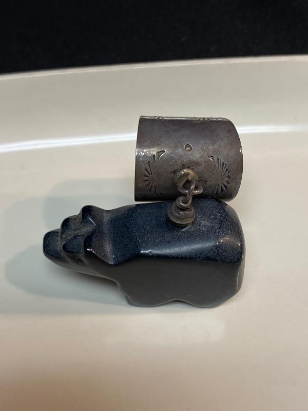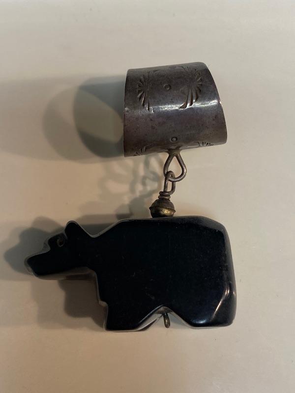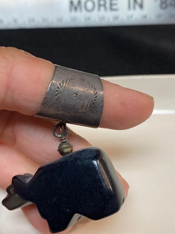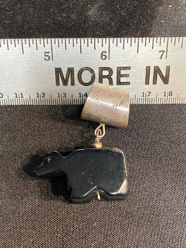 Carved stone bear pendant. No marking on the metal but with a little work it starts to shine up. Bear is about 1.5" in size.