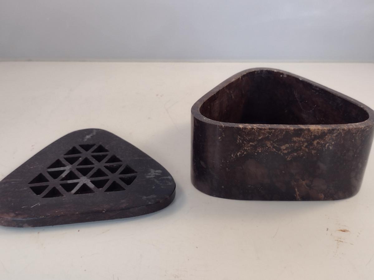 Carved Stone Box- Approx 4 1/2" Wide, 2 1/2" Tall