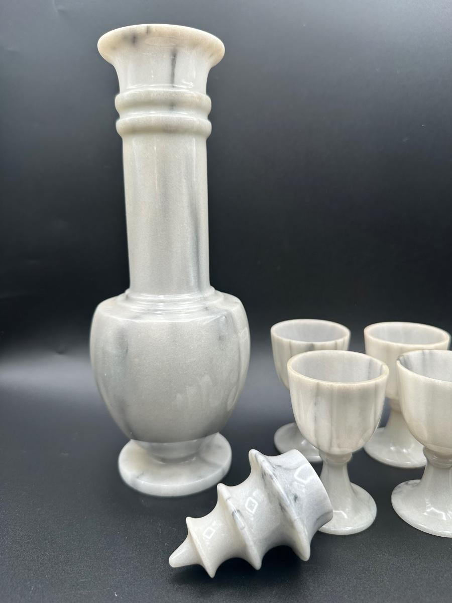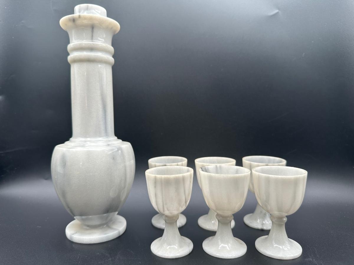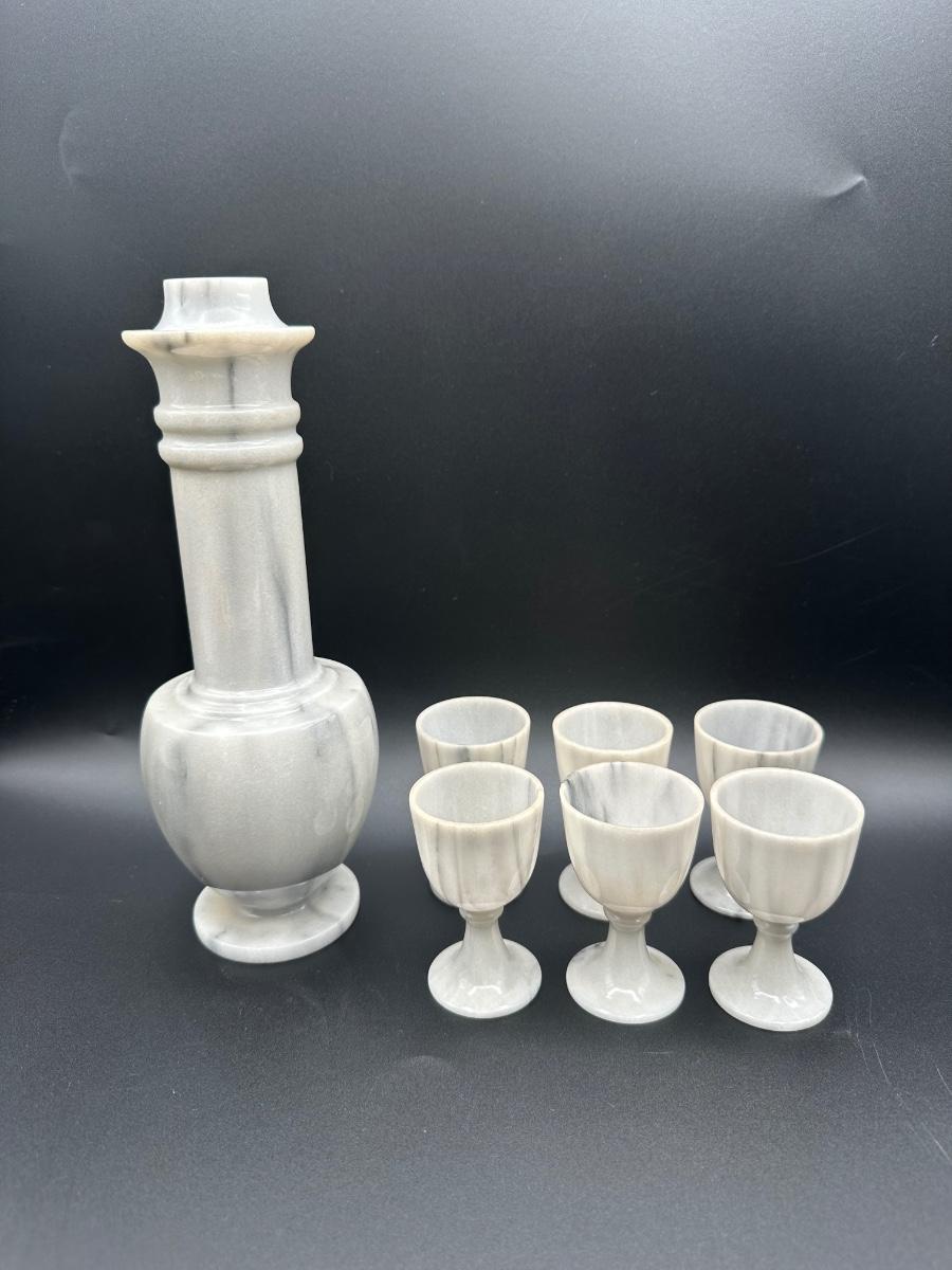 Carved Stone Decanter Set with 6 Cups – Made in Taiwan