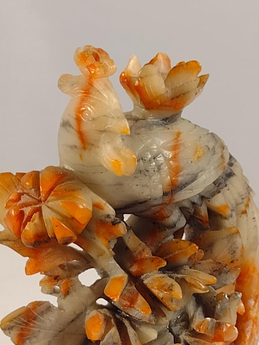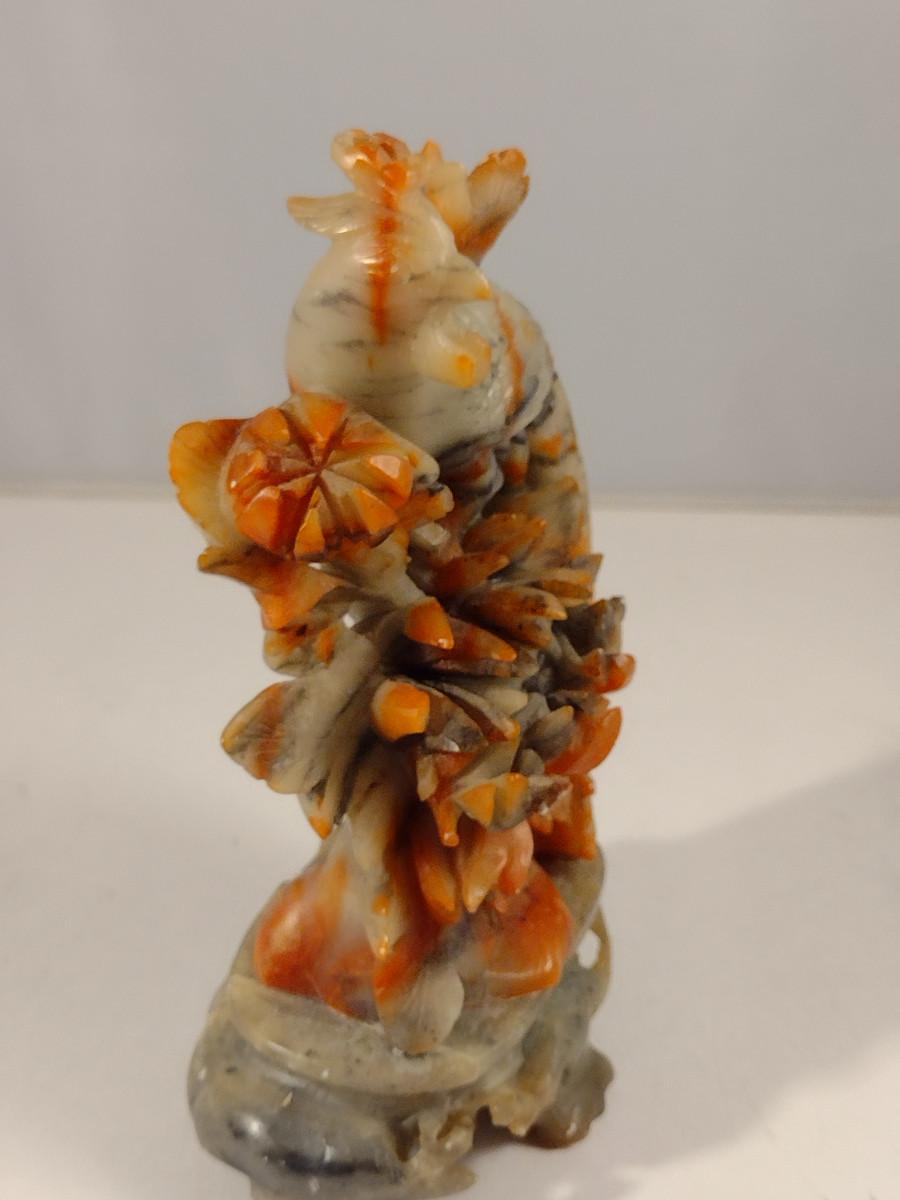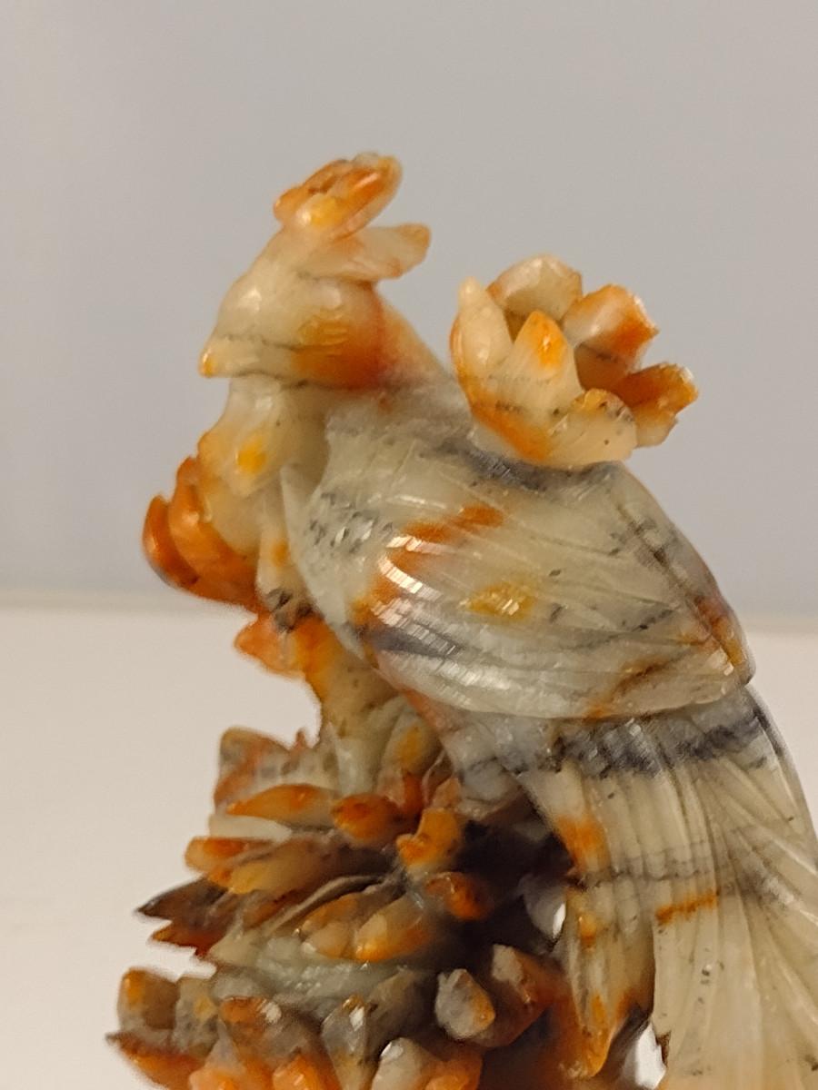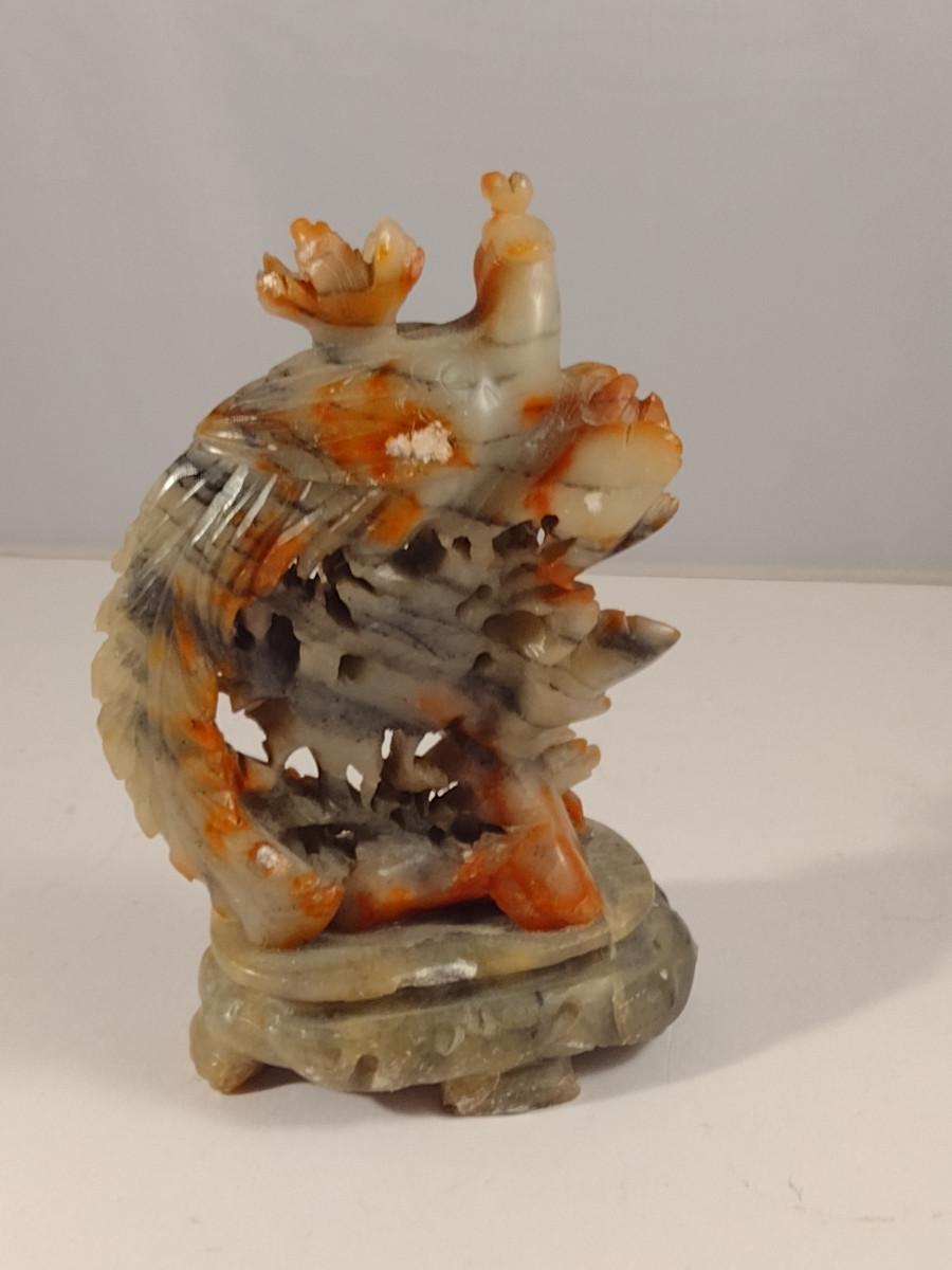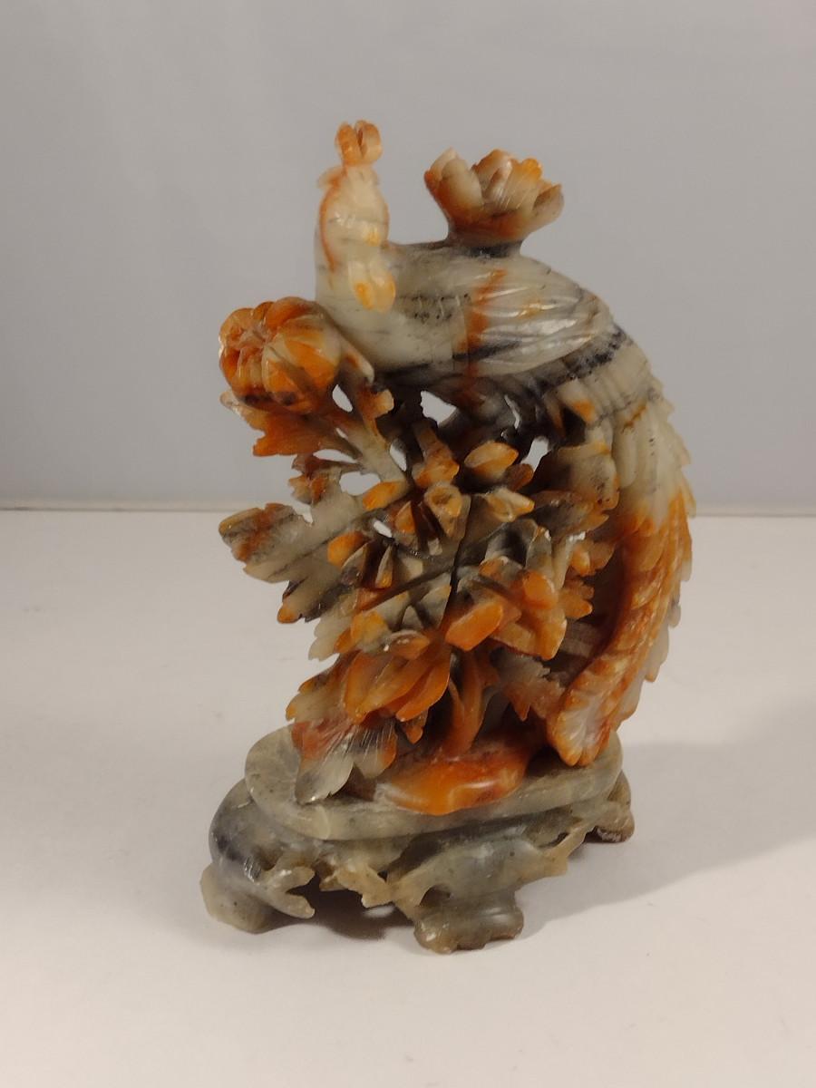 Carved Stone Peacock Design Figurine. Item is approx 6" tall.