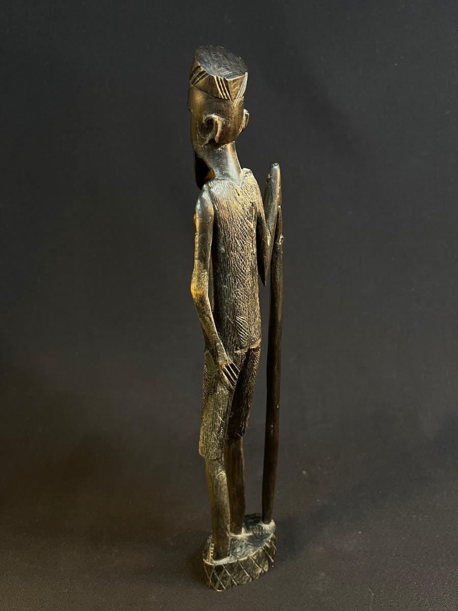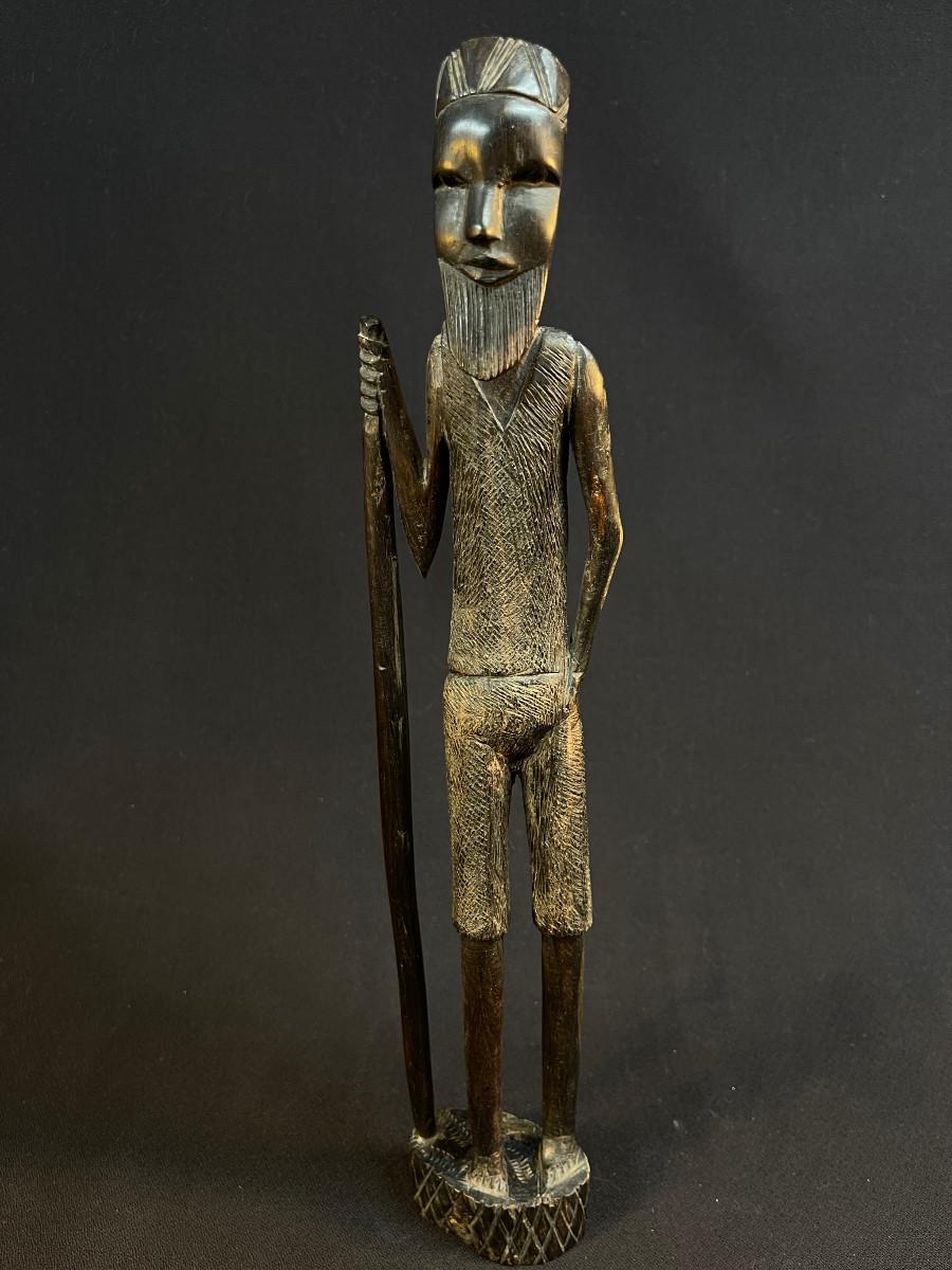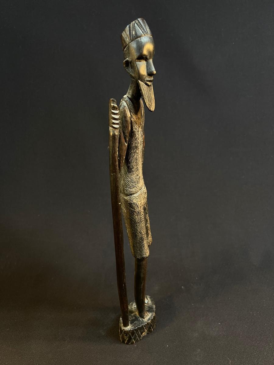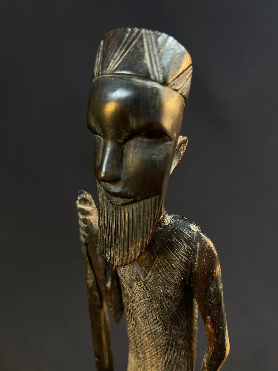 Carved Tall Bearded African Man w Walking Stick Besmo