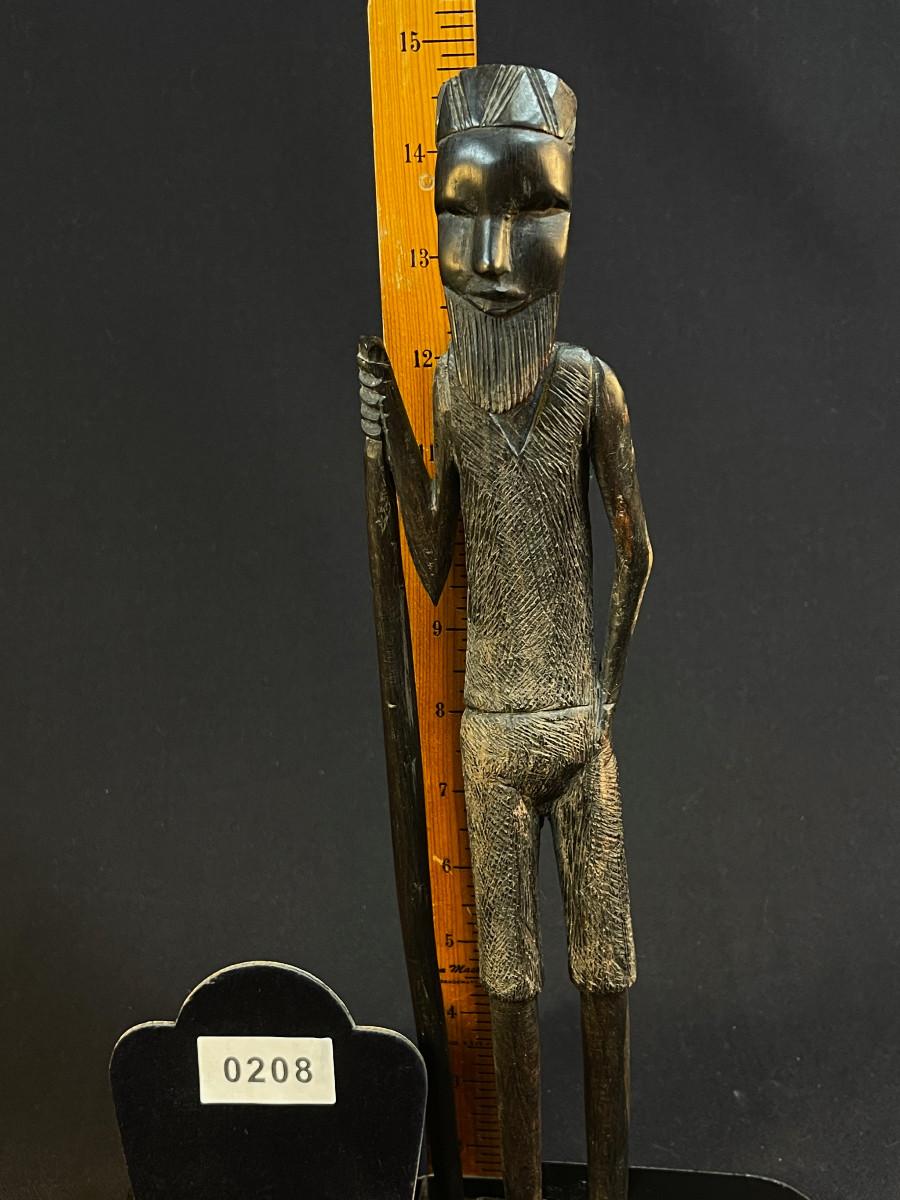 Carved Tall Bearded African Man w Walking Stick with a great face / expression