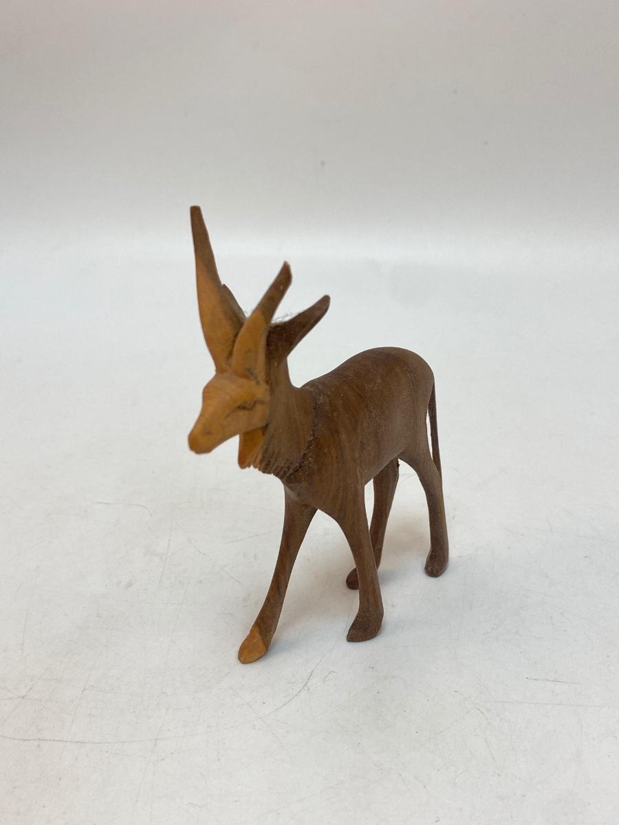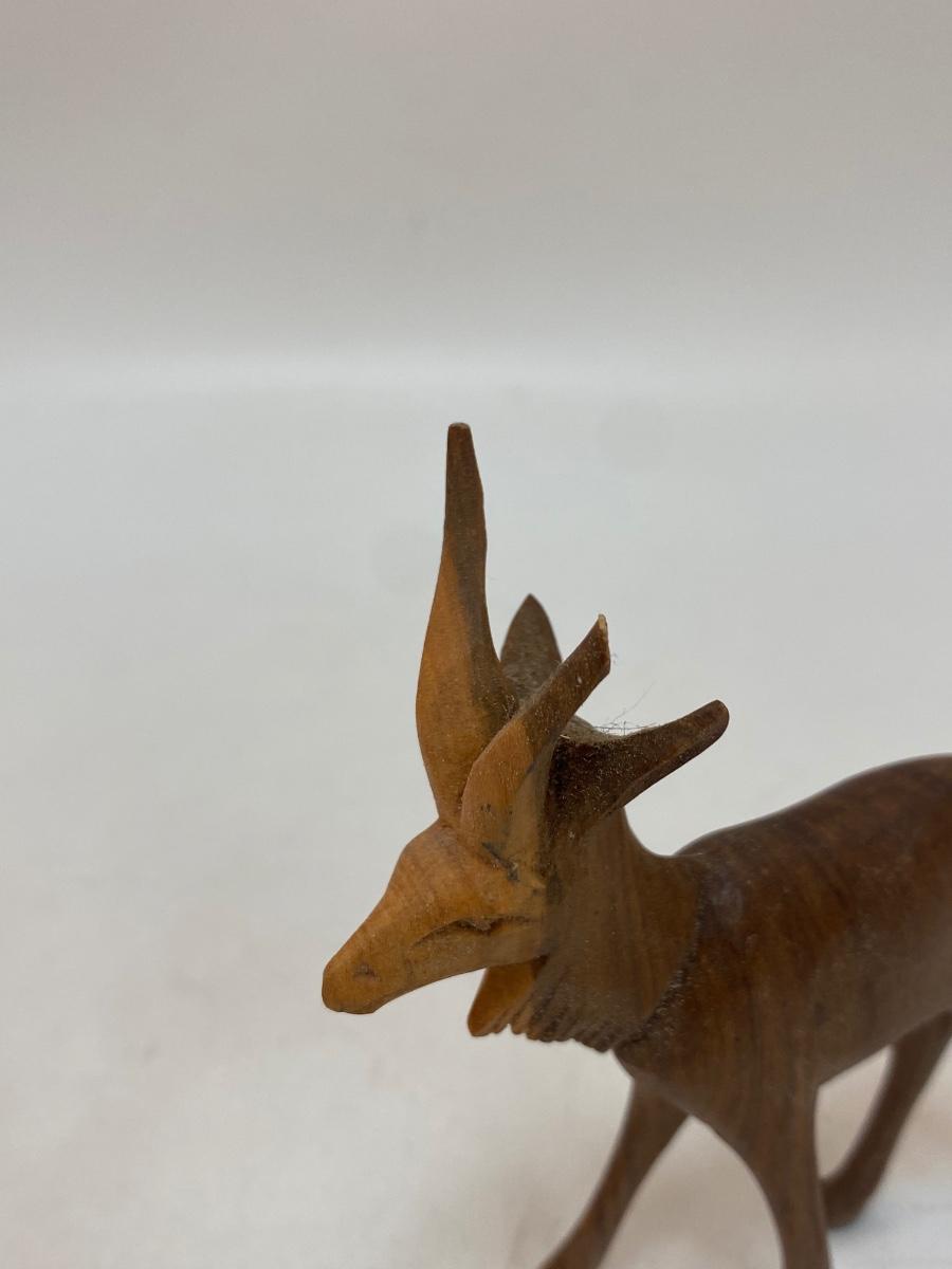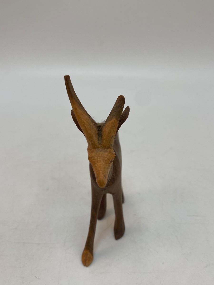 Carved Wood African Safari Wild Animal Figurines Hippo Giraffe Impala. The giraffe is missing an ear, and the impala has broken horns but both display nice. Hippo is undamaged.