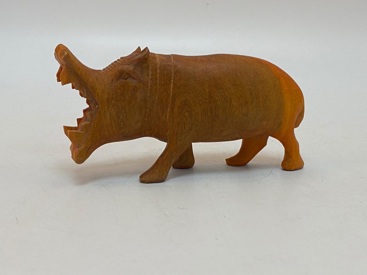Carved Wood African Safari Wild Animal Figurines Hippo Giraffe Impala