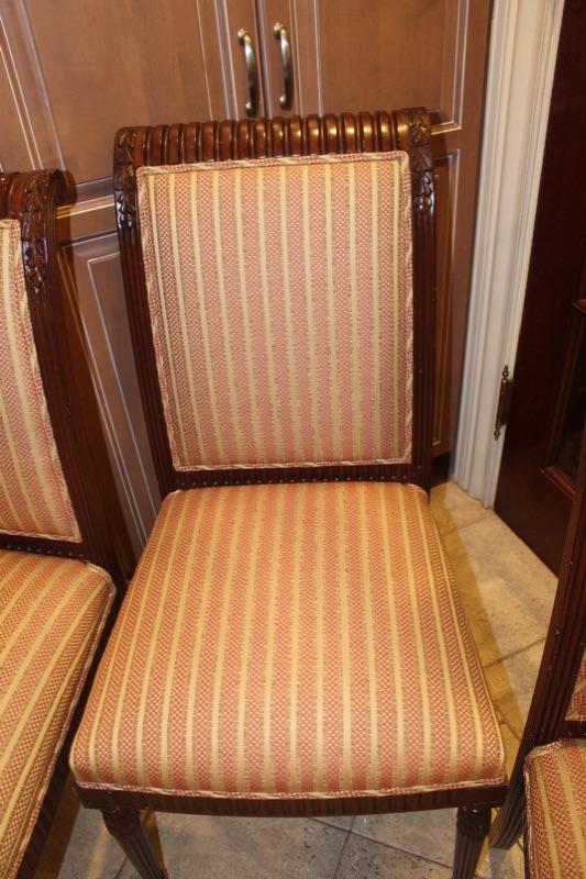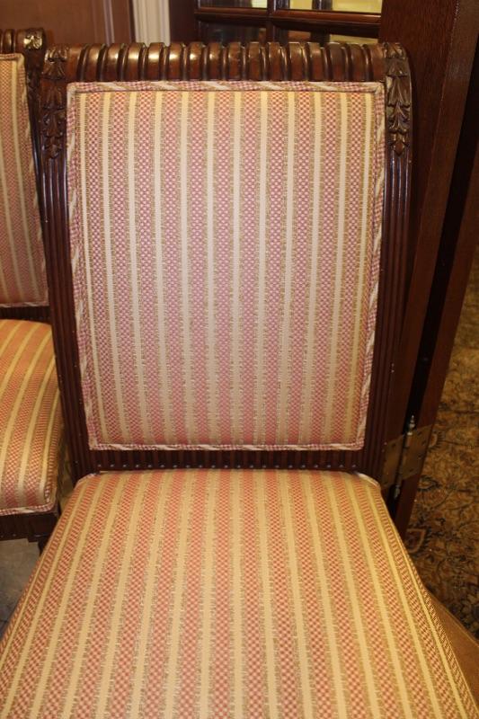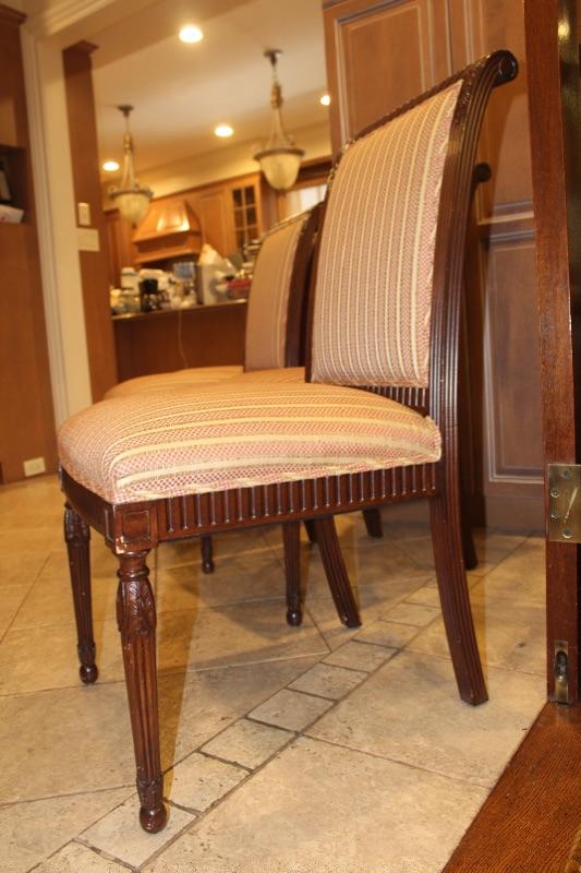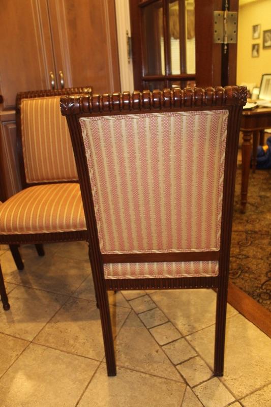 Carved Wood High Back Chair Set (4) with Custom Upholstery