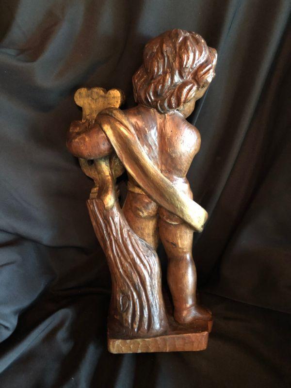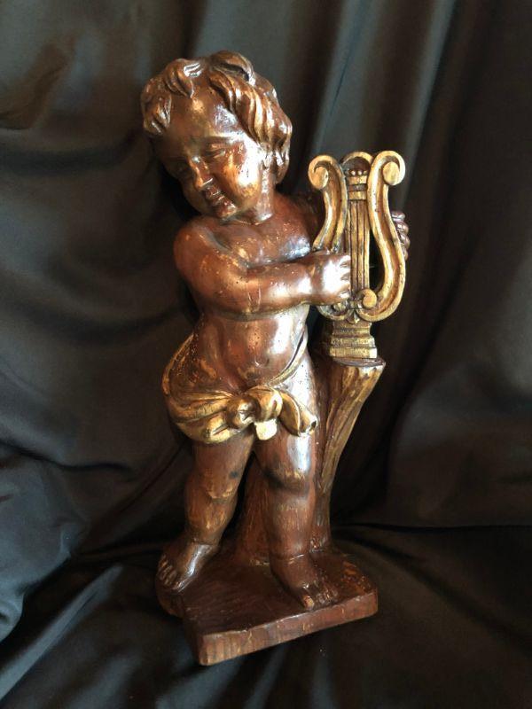 Carved Wood Cherub w/Harp