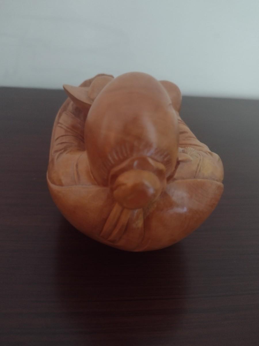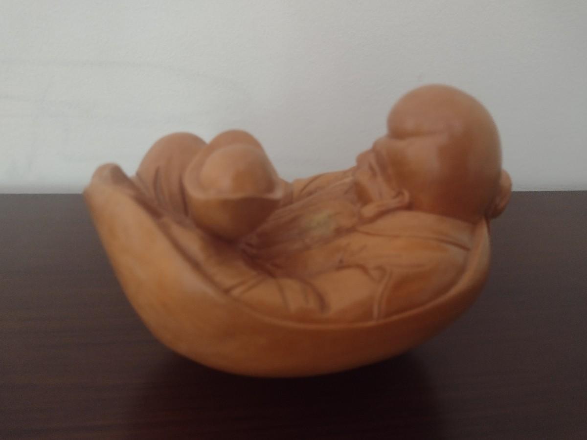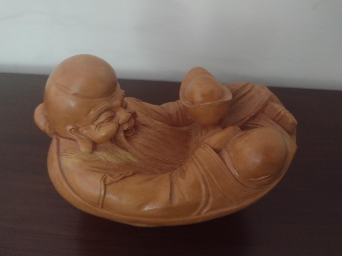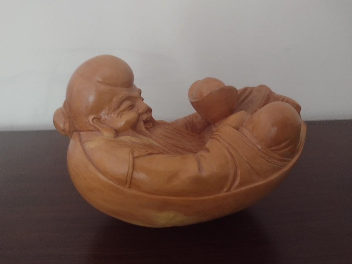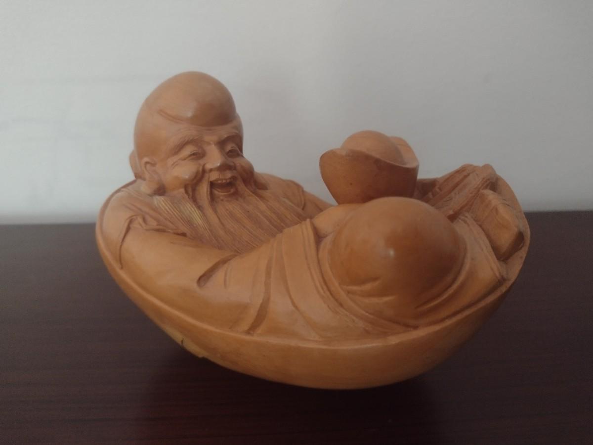 Carved Wood Chinese Figure Wisdom and Prosperity
