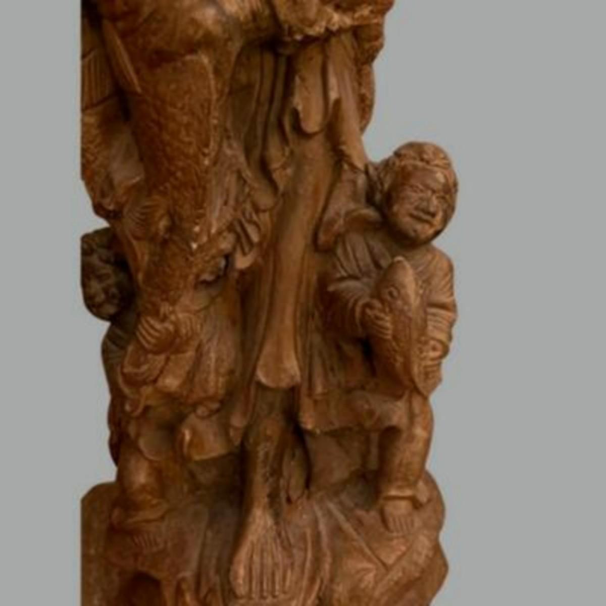 This is an exquisite carved wood piece. It makes a statement in any room. The details used in this carving are so life like. This is a priceless piece of art.