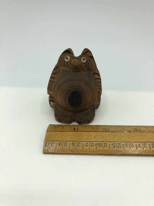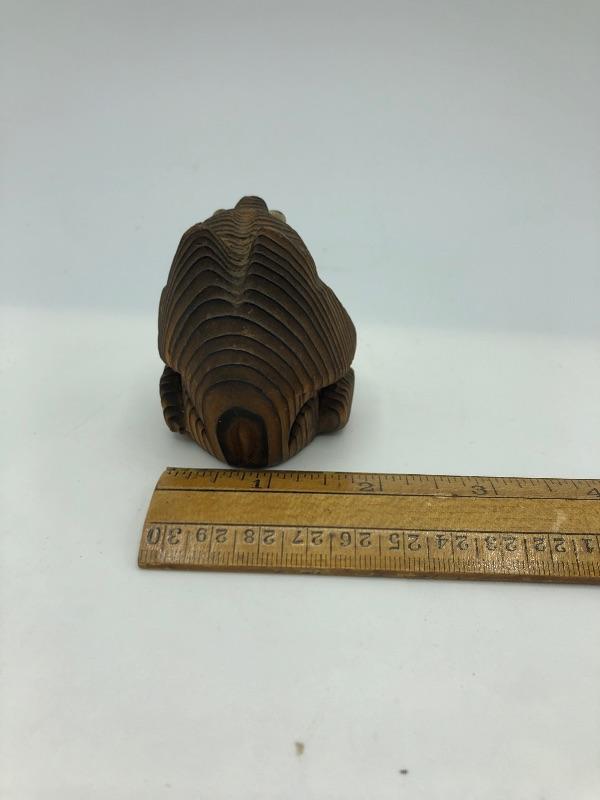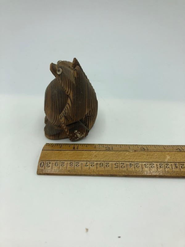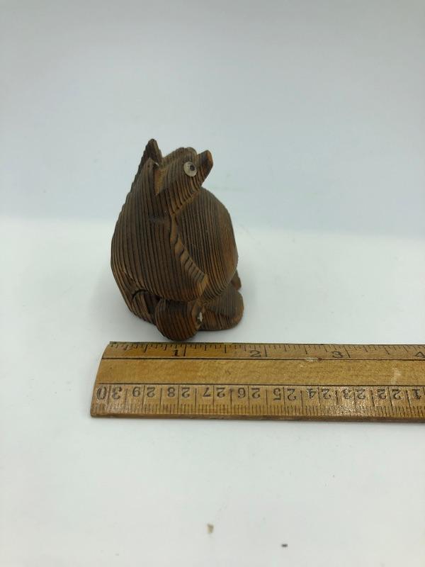 Vintage carved wood creature figurine. Miniature at less then 2” wide.