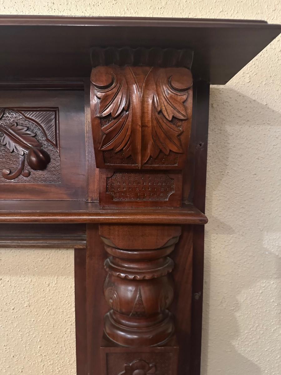 Carved Wood Fireplace Mantel with Decorative Panels