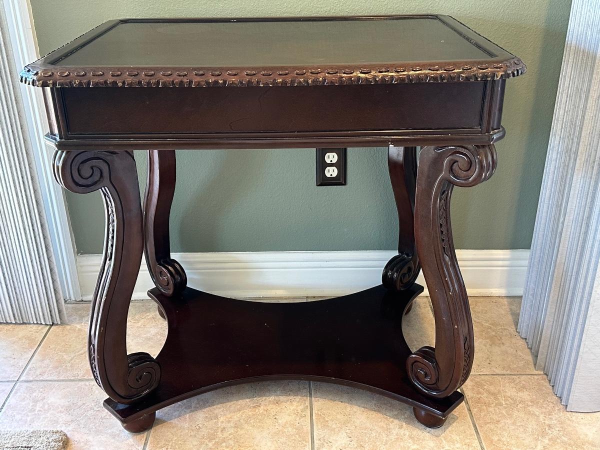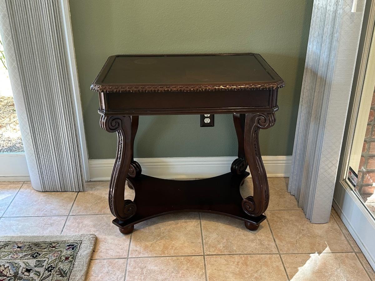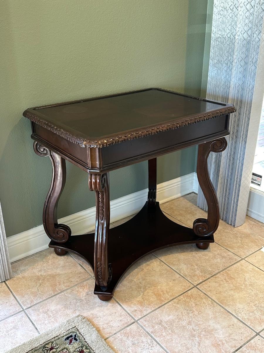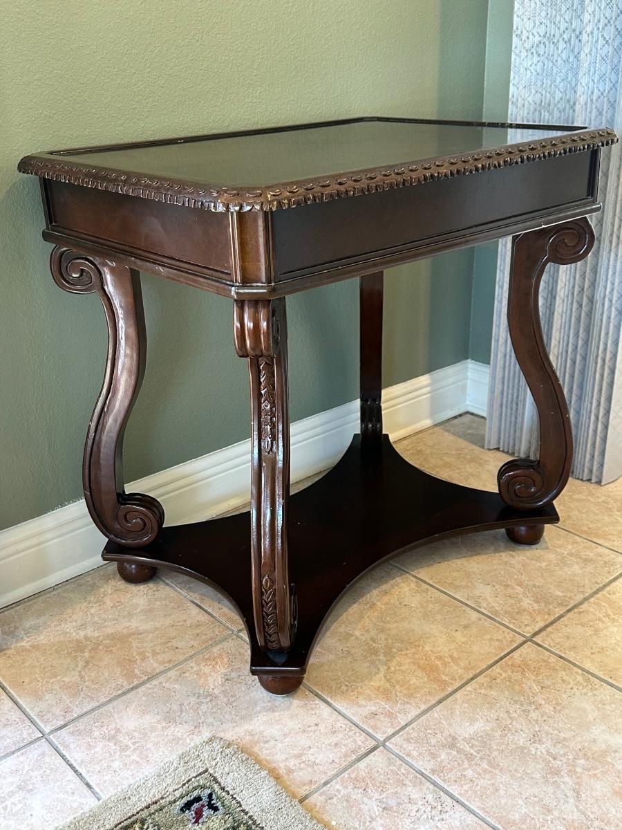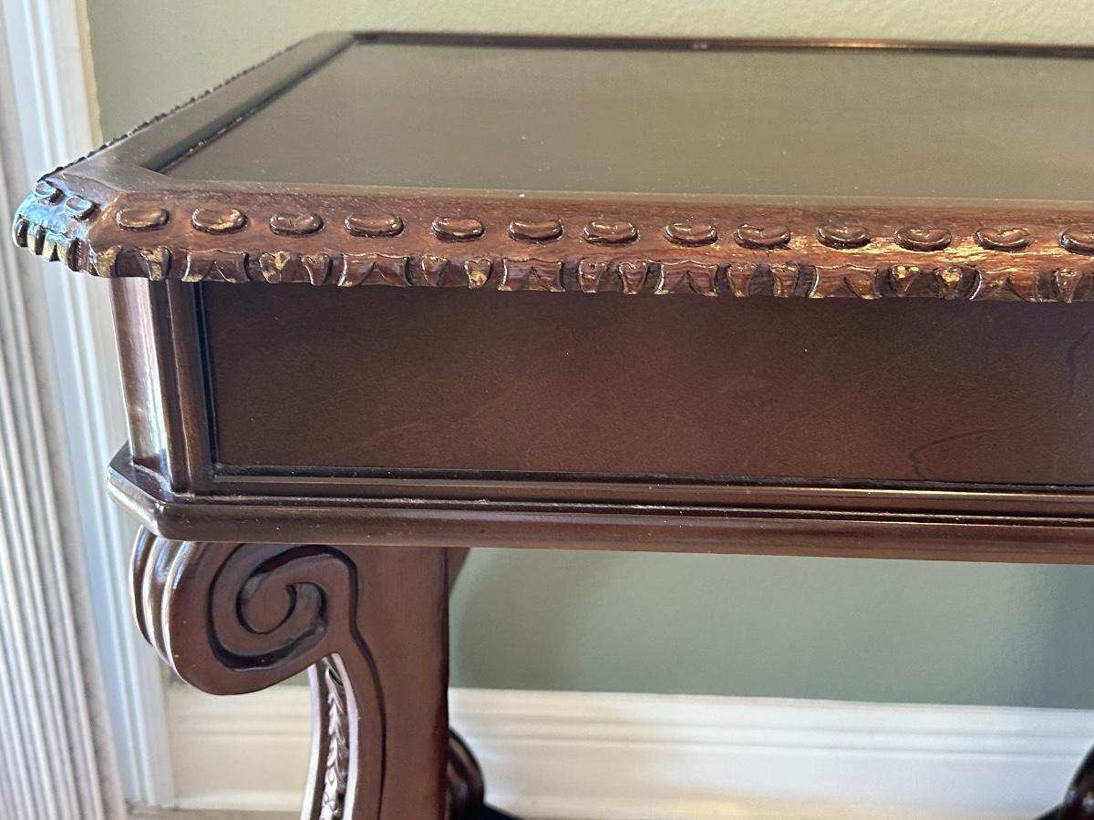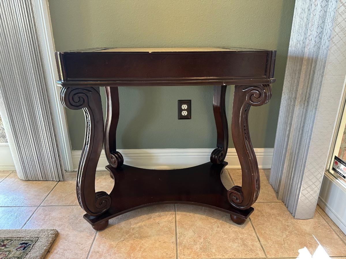 Carved Wood Game Table with Chess & Backgammon Tops.
