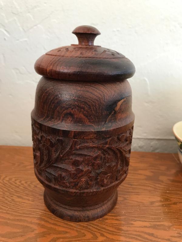 Carved Wood Jar India [1233]