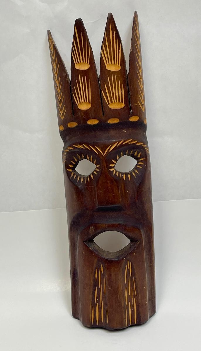 Carved Wood Mask long and skinny Tiki God