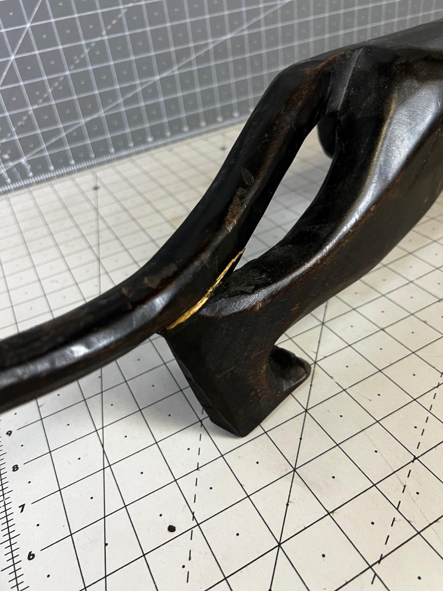 Has a Aged Related Crack on the tail. Measures 35" Long. Ebony Color.
