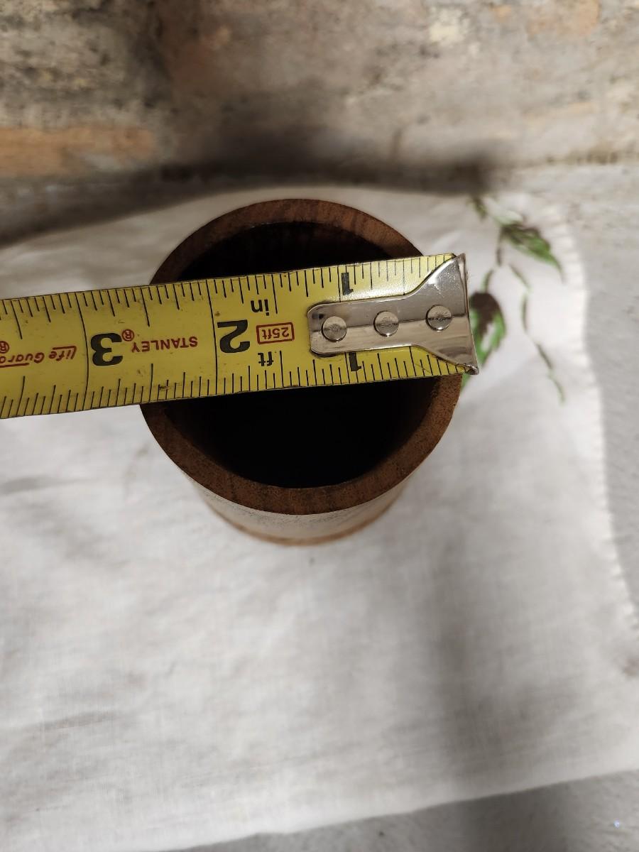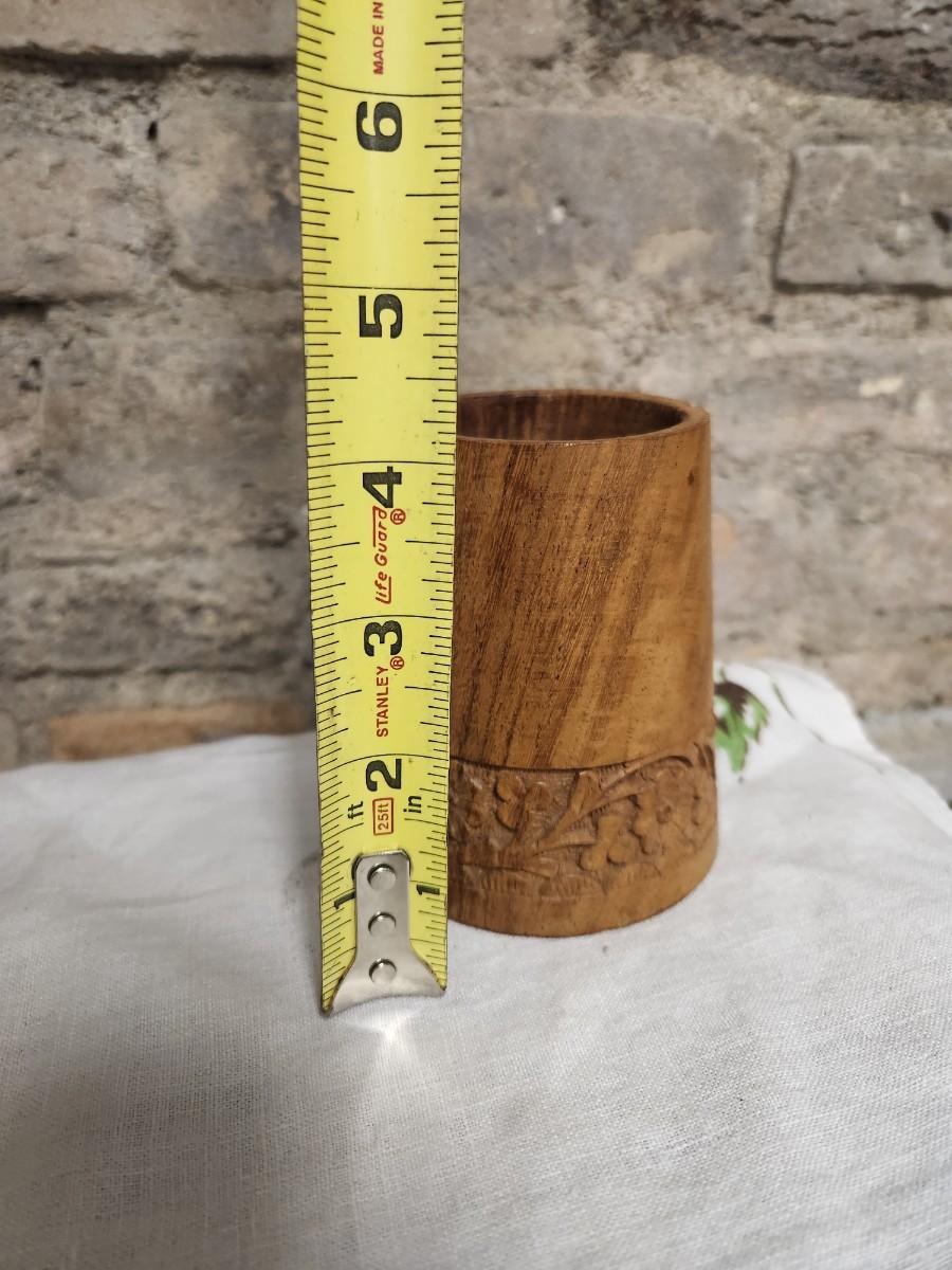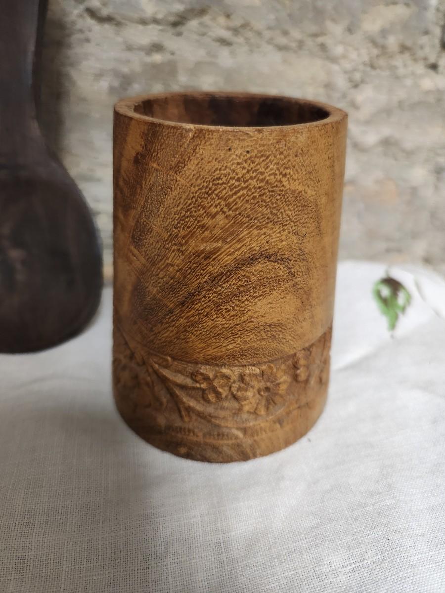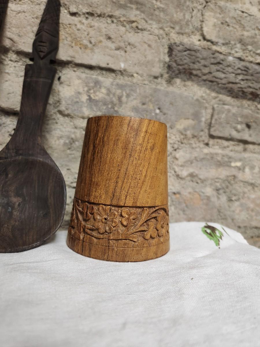 The salad set is ebony carved wood and the small MCM wood holder is likely teak.