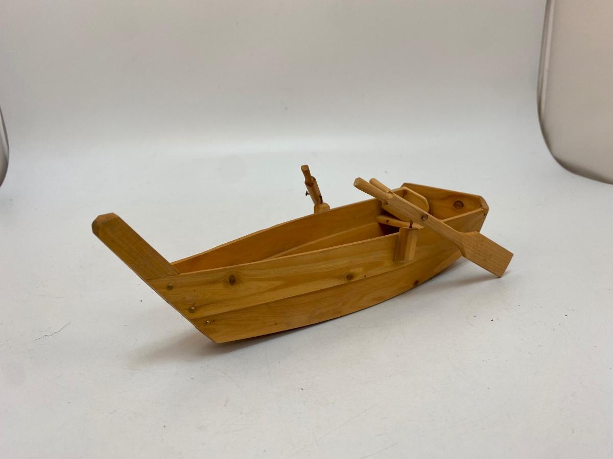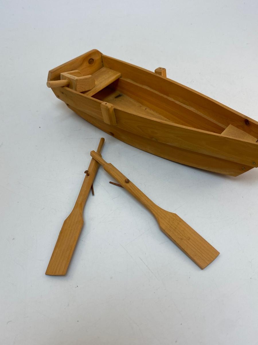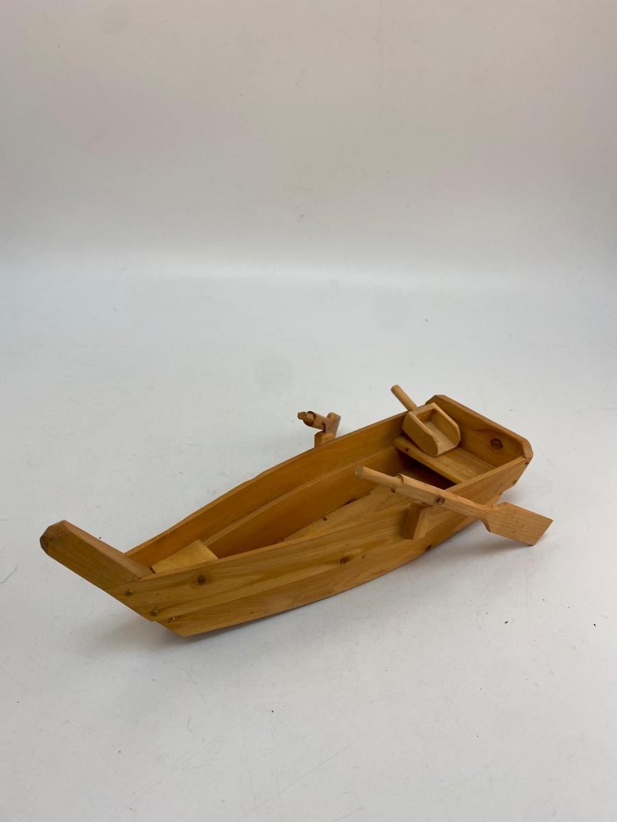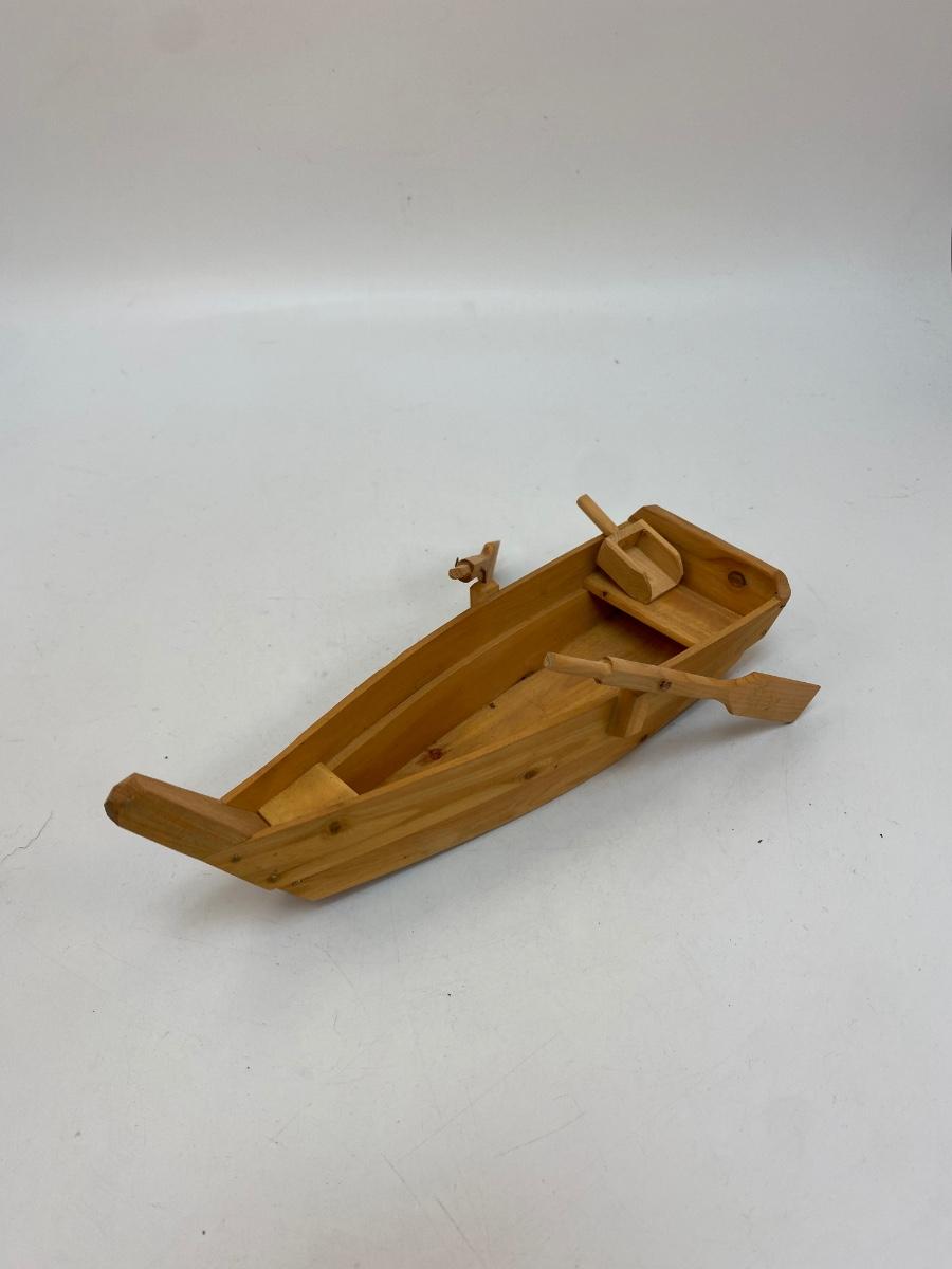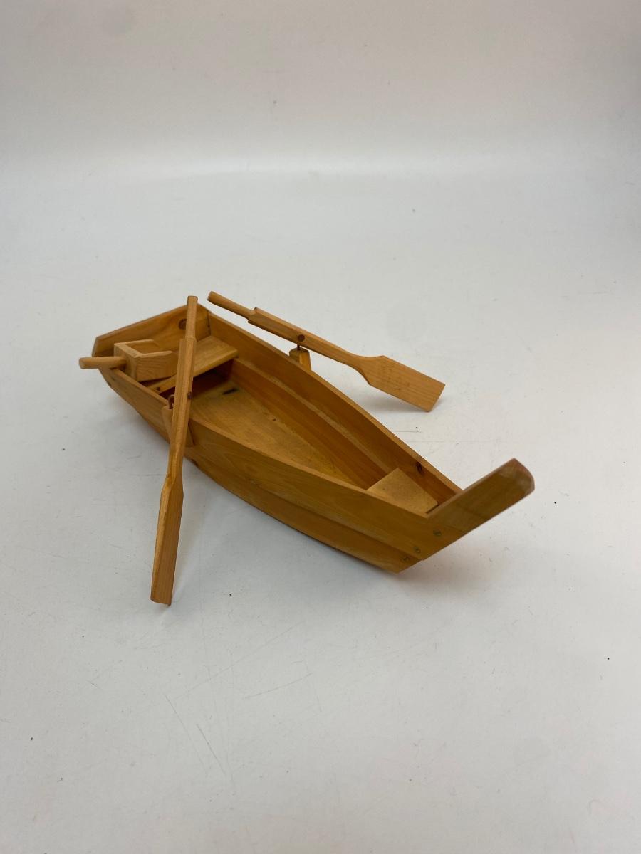 Carved Wood Rowboat Boat with Moveable Oars