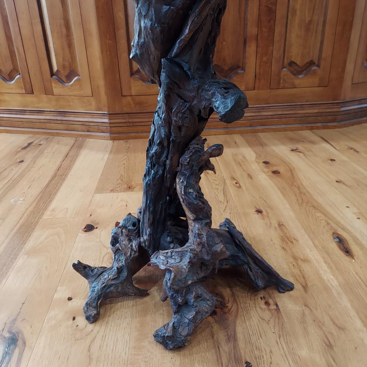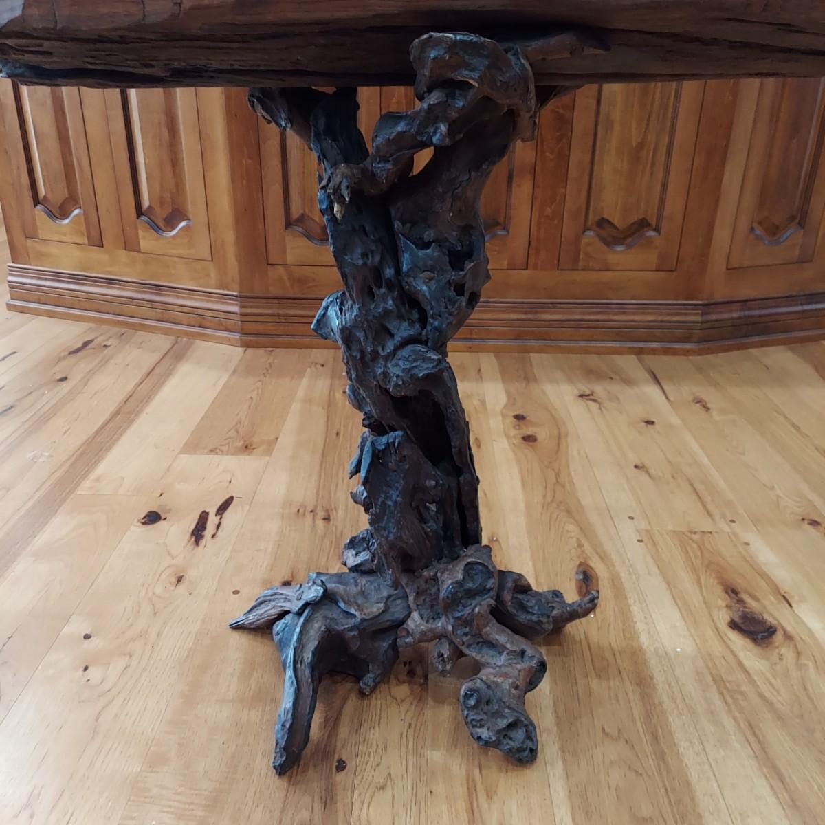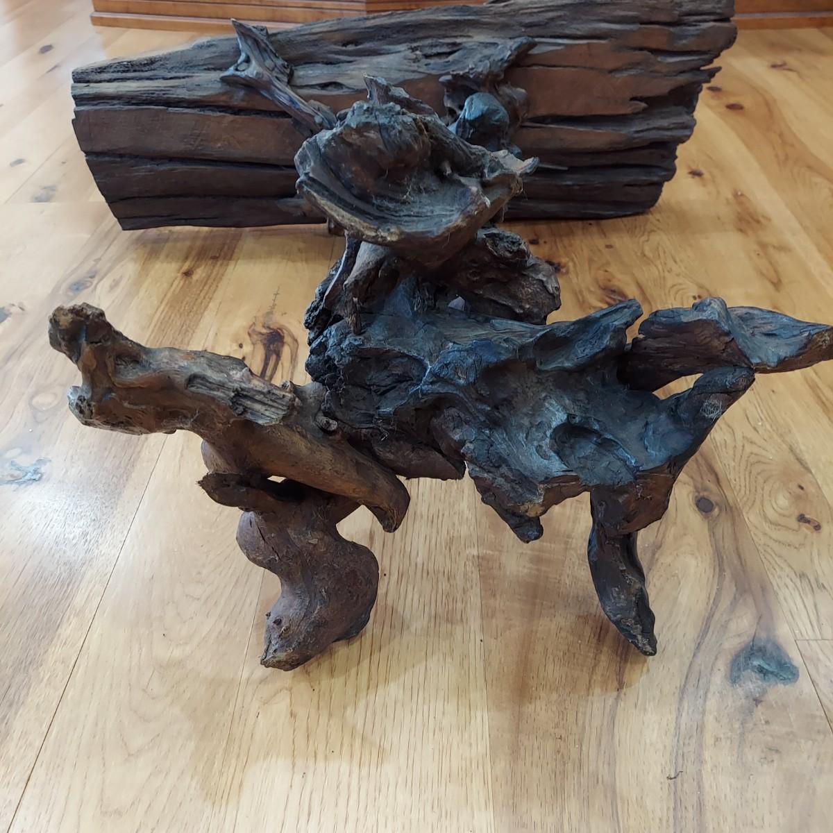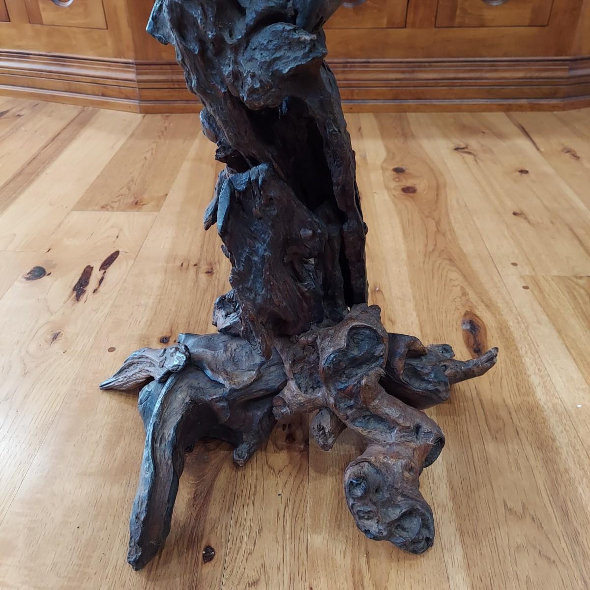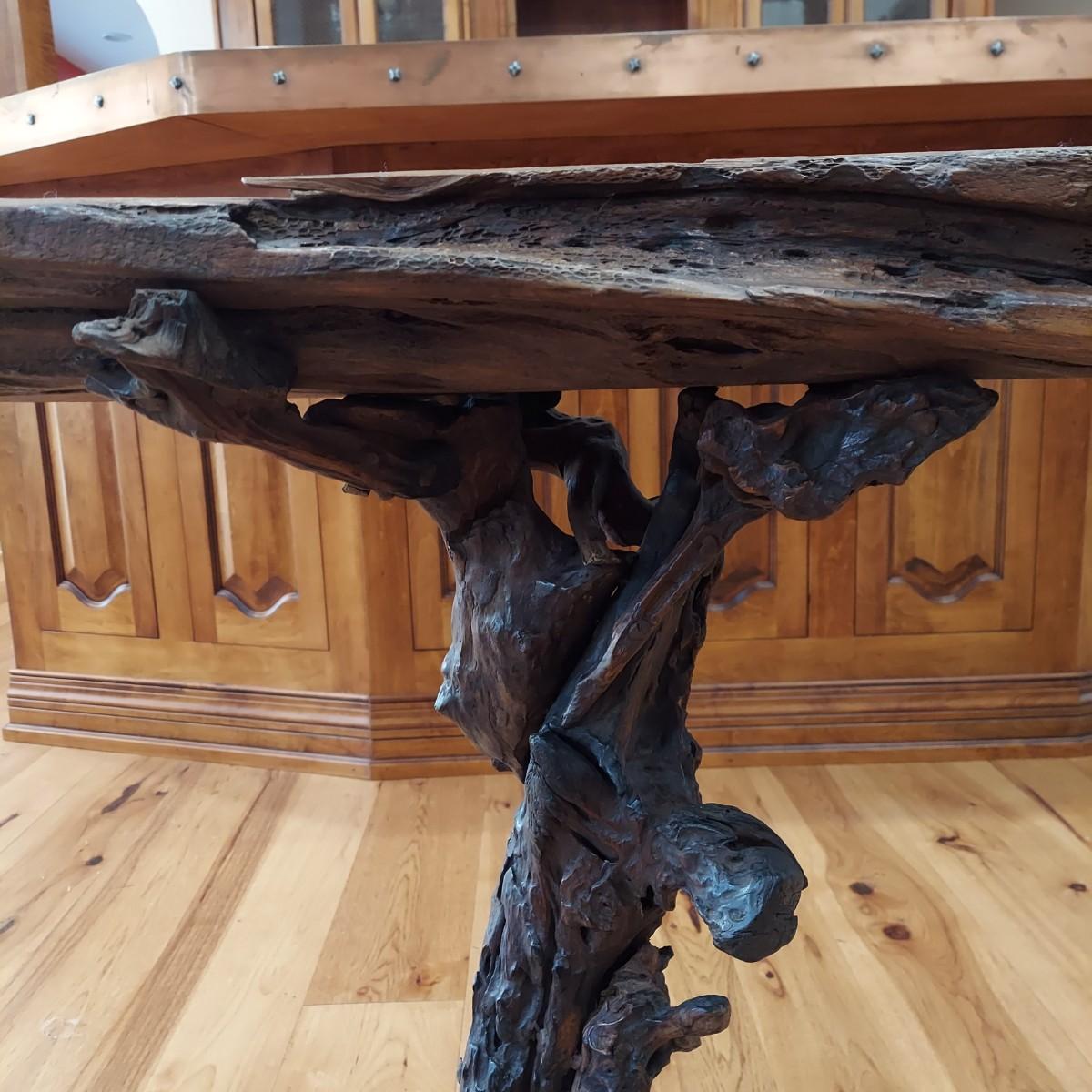 Solid wood table with carved out top. It looks like cypress but does not have any markings. Approximately 33" x 17" x 30"H. Local Pickup Only