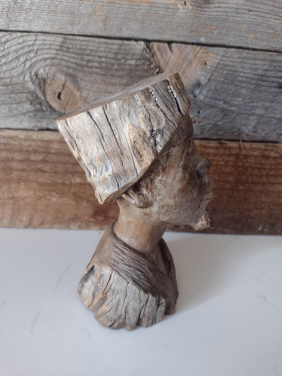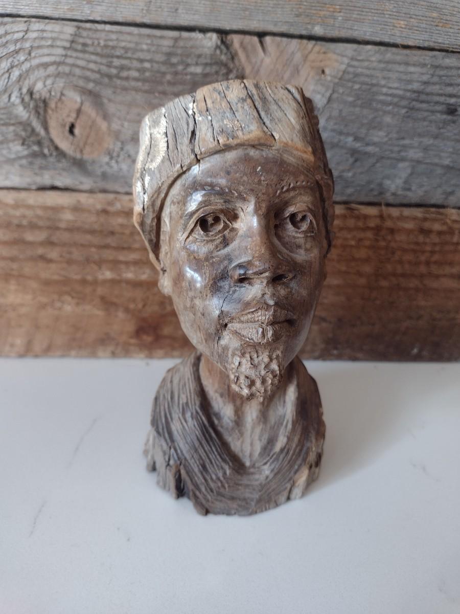 Carved Wood Tribal African Art Bust Signed