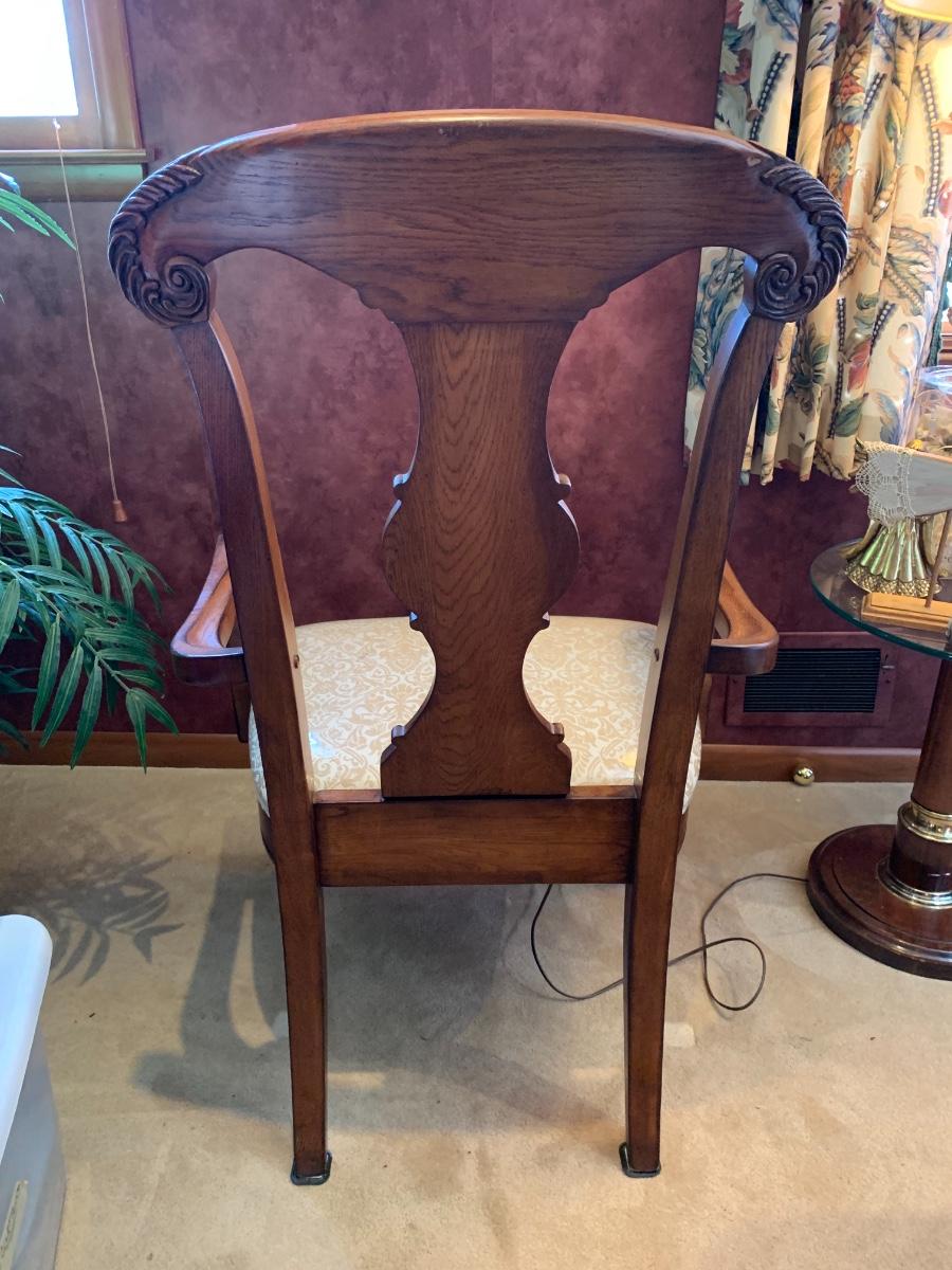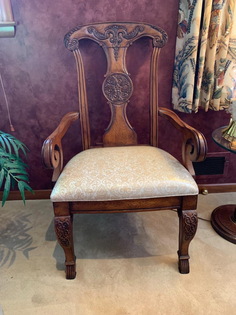 Carved wood chair with upholstered seat. In like new condition.
