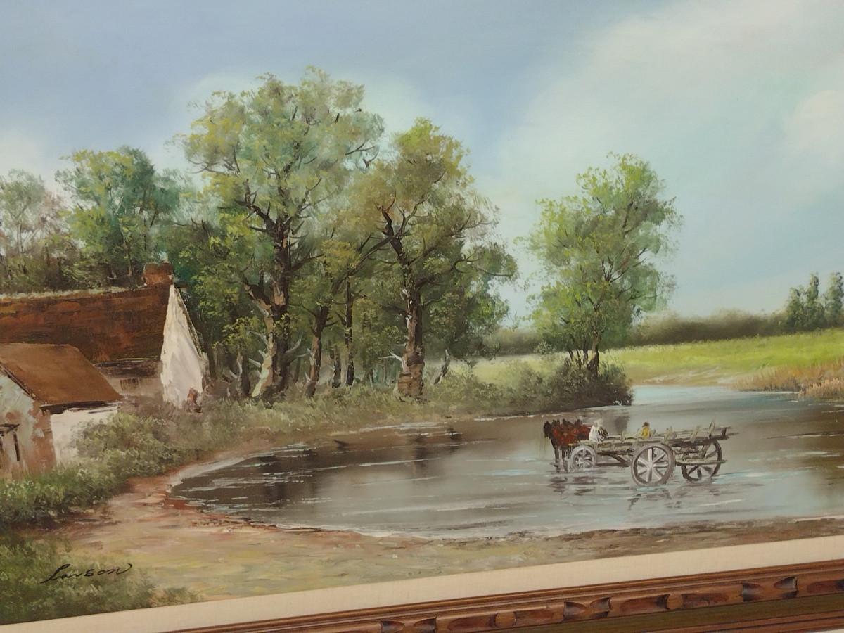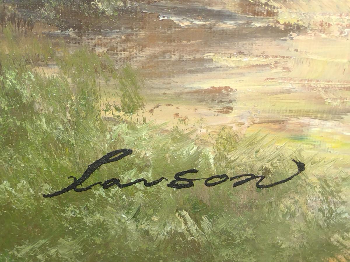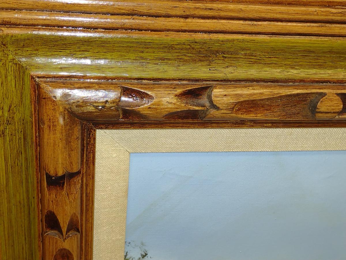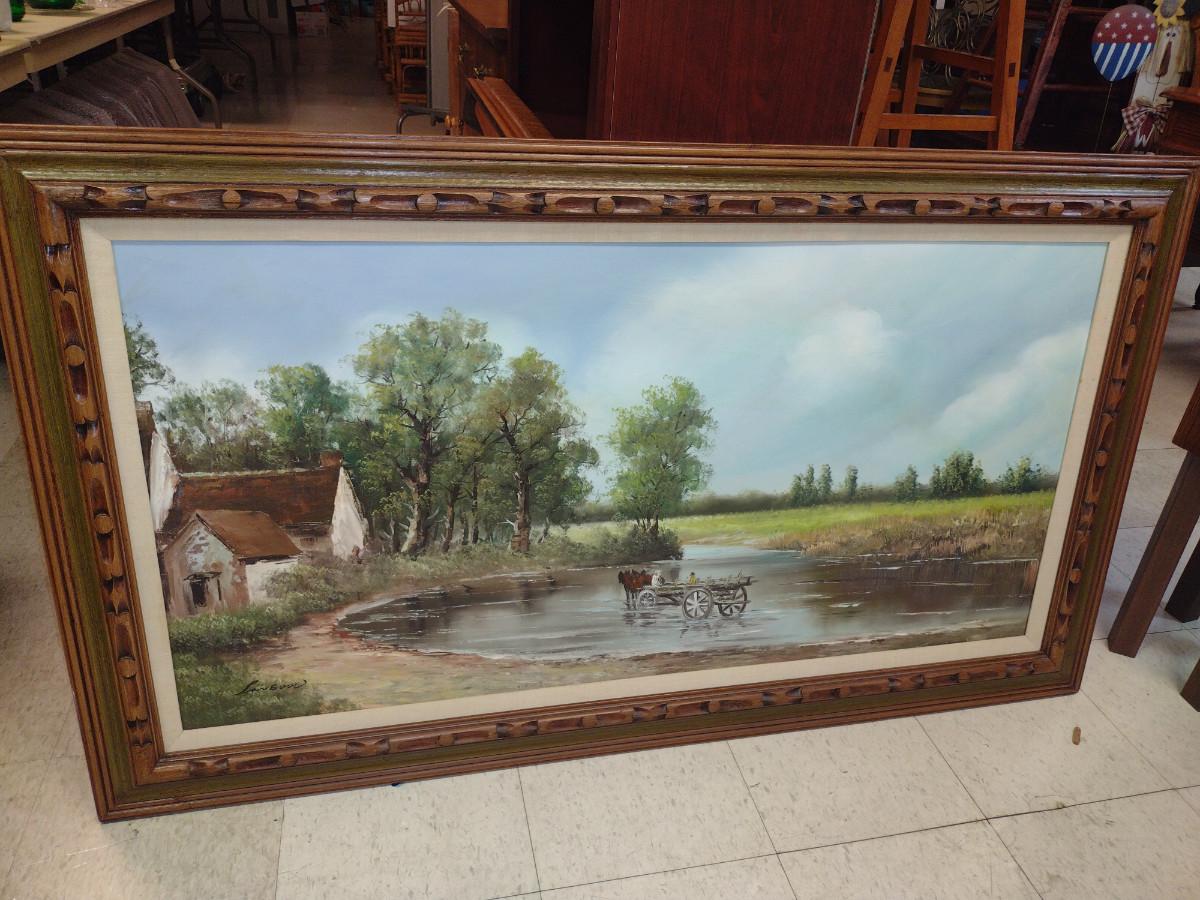 Carved Wooden Framed Landscape Painting on Canvas- Signed by Lawson- Approx 56" x 32 1/2"
