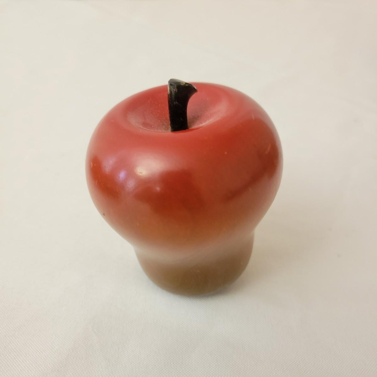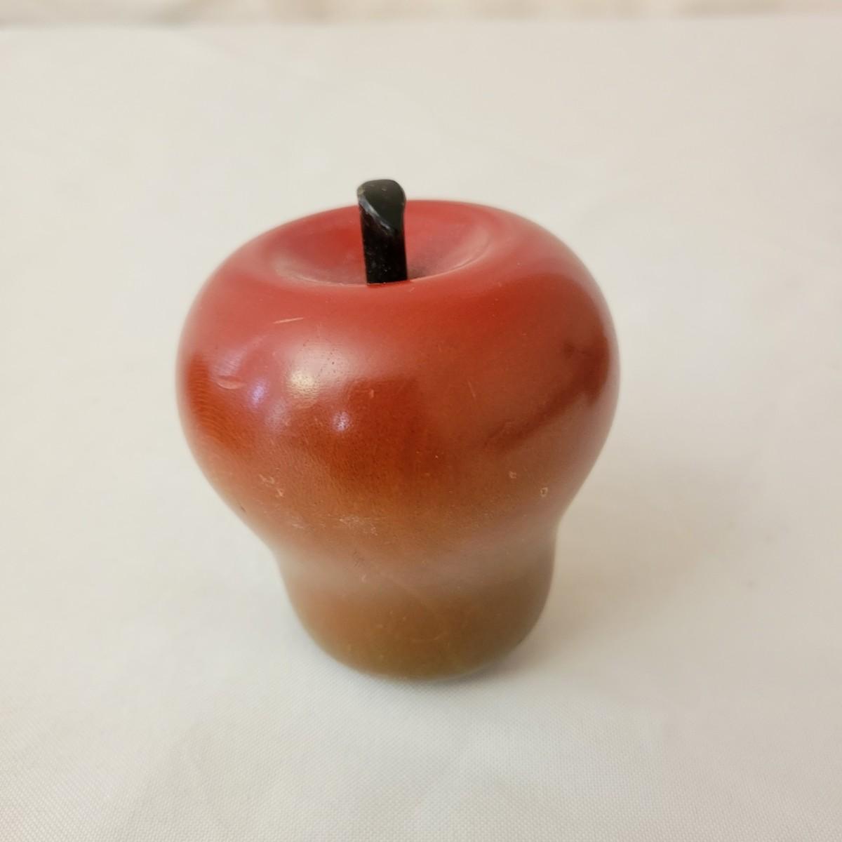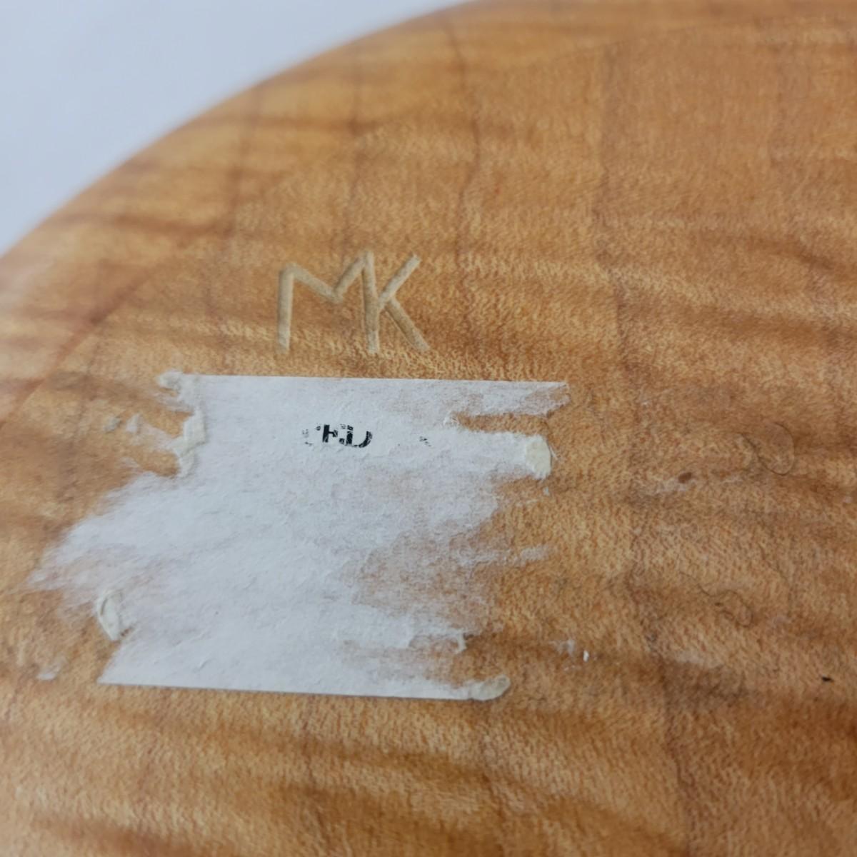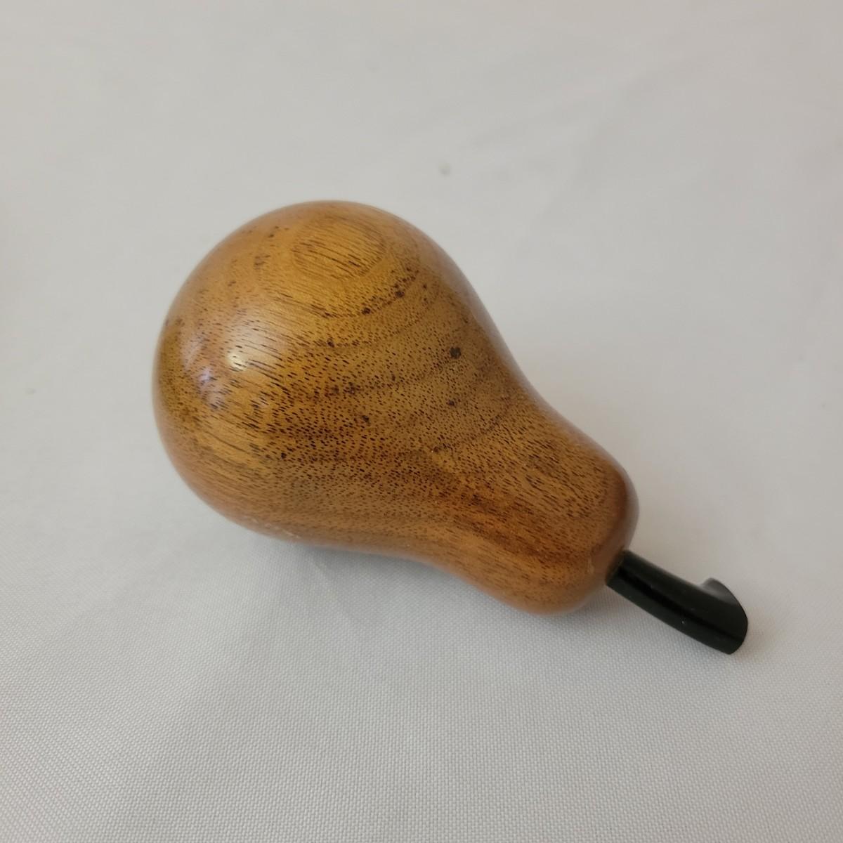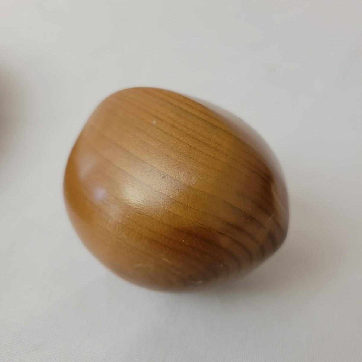 A carved wooden bowl with an inlay that is initialed on the bottom. There are six carved pieces of fruit included. The bowl itself measures approximately 10"D x 2"H. Some of the fruit has some minor scratches. Shipping available