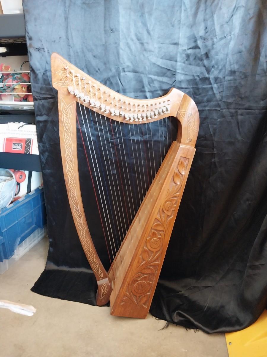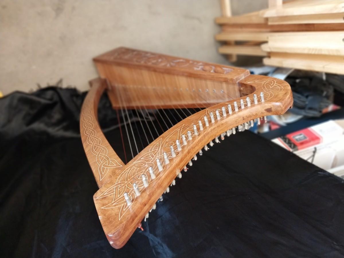 CARVED WOODEN MUSICAL HARP
