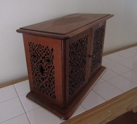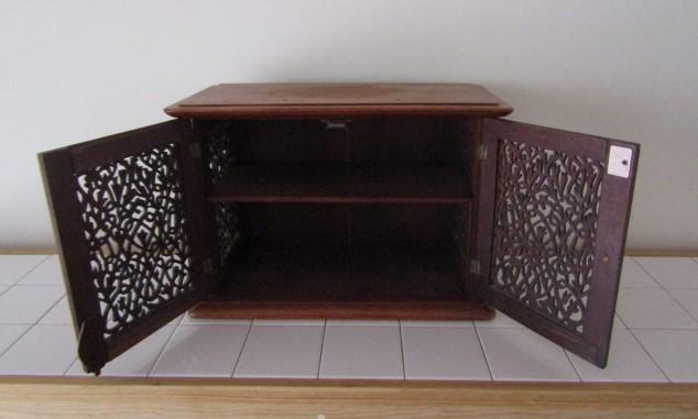 Carved Wooden Storage Box with Shelf- 18 1/2" x 8 3/4" x 13"