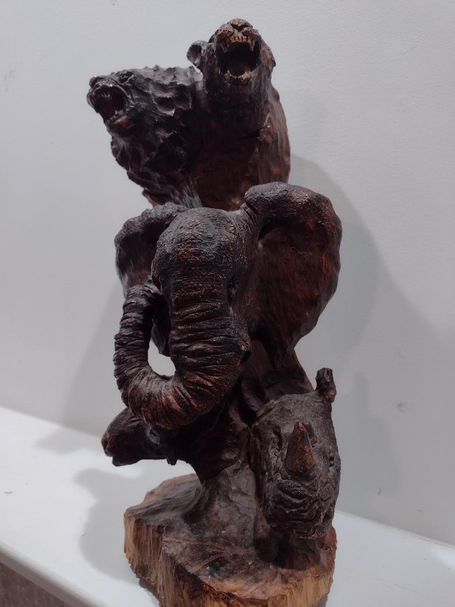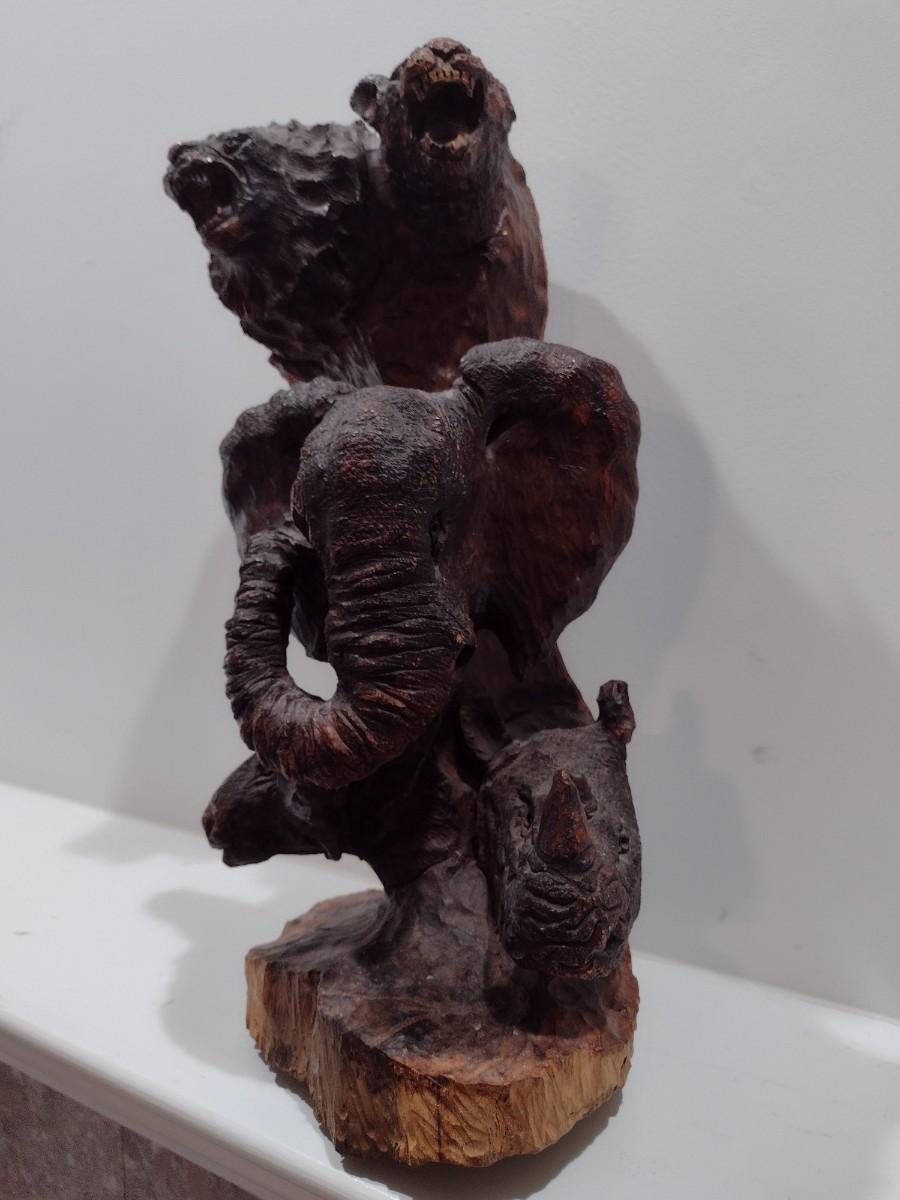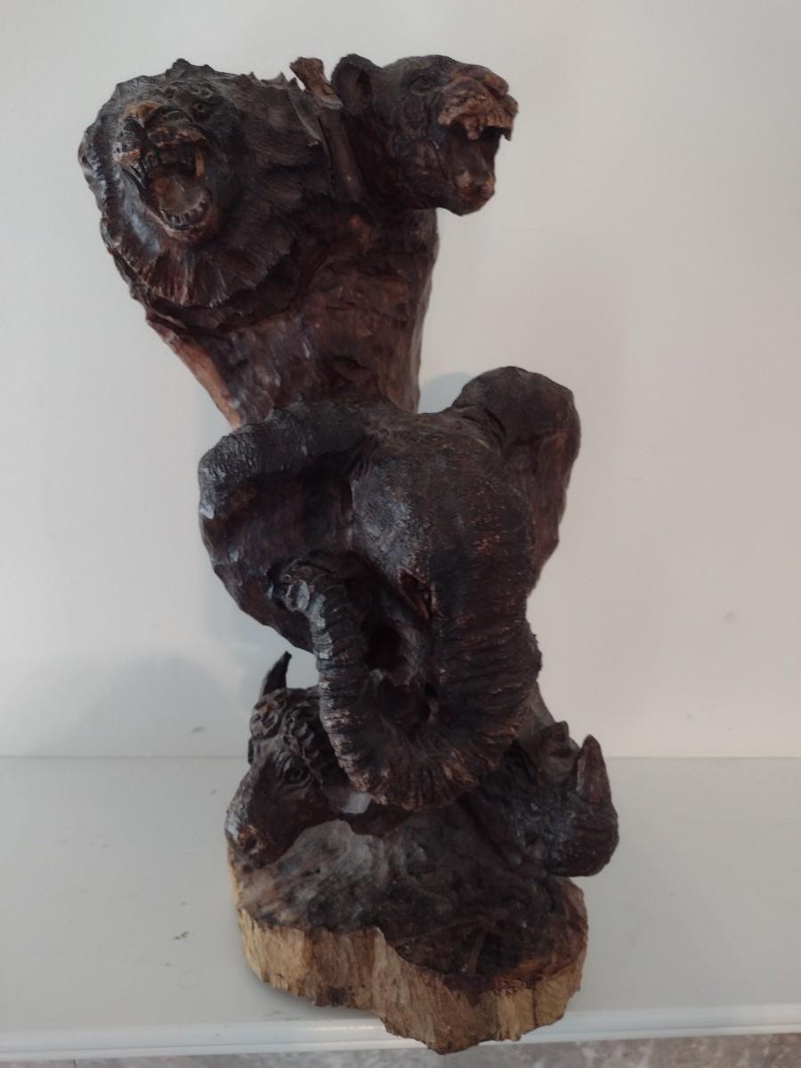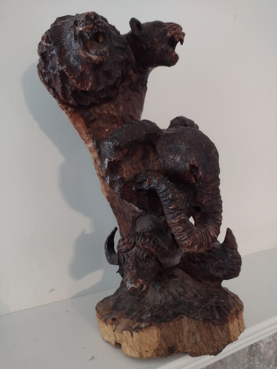 Large African Big Game Wood Carving see all pictures for minor damage issues