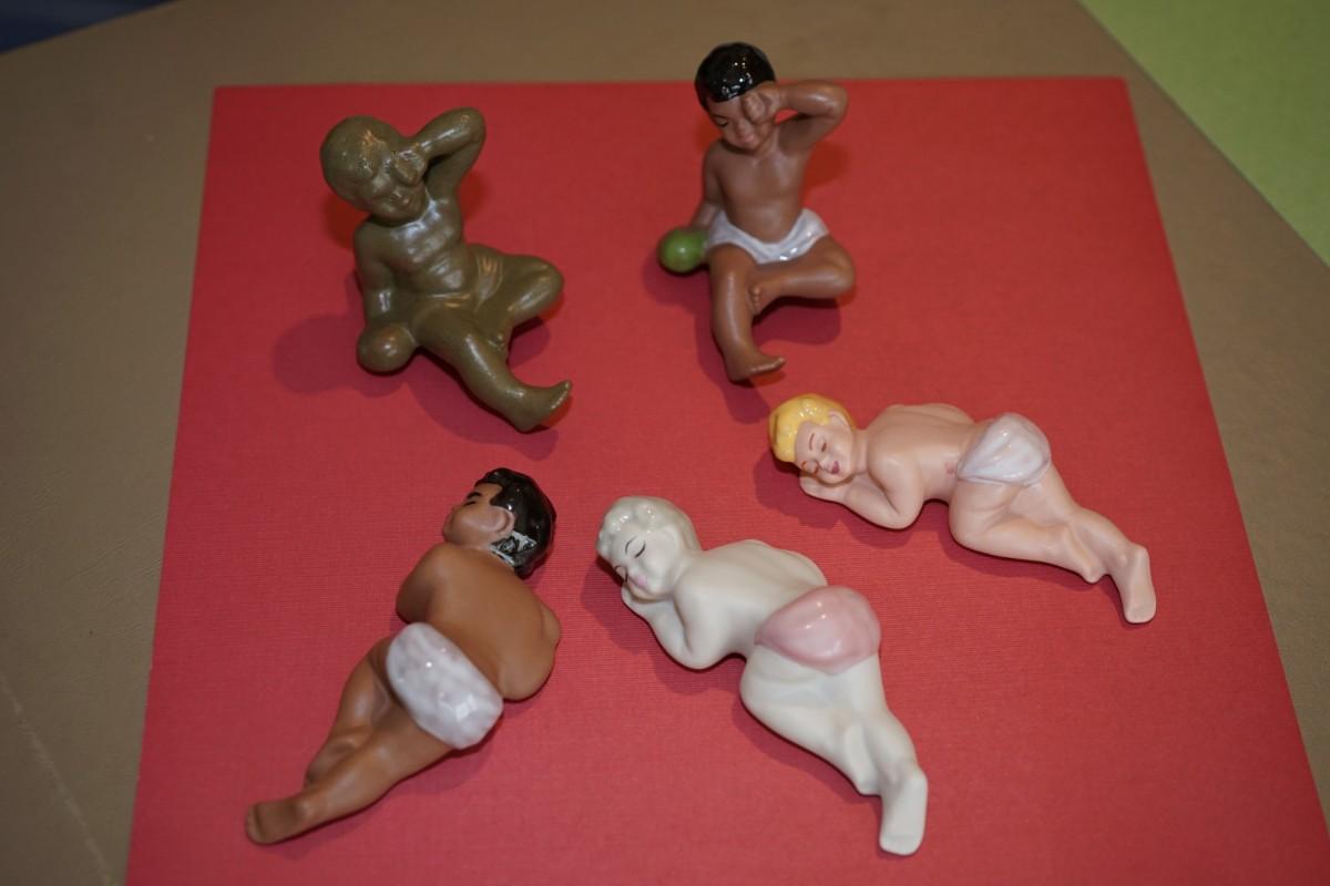 CERAMIC ARTS STUDIO MADISON, WI. COMMERATIVE SLEEPING BABIES GROUPING OF FIVE