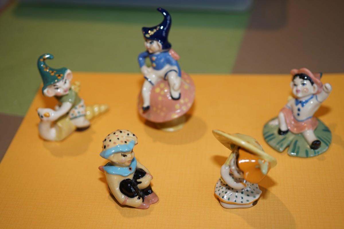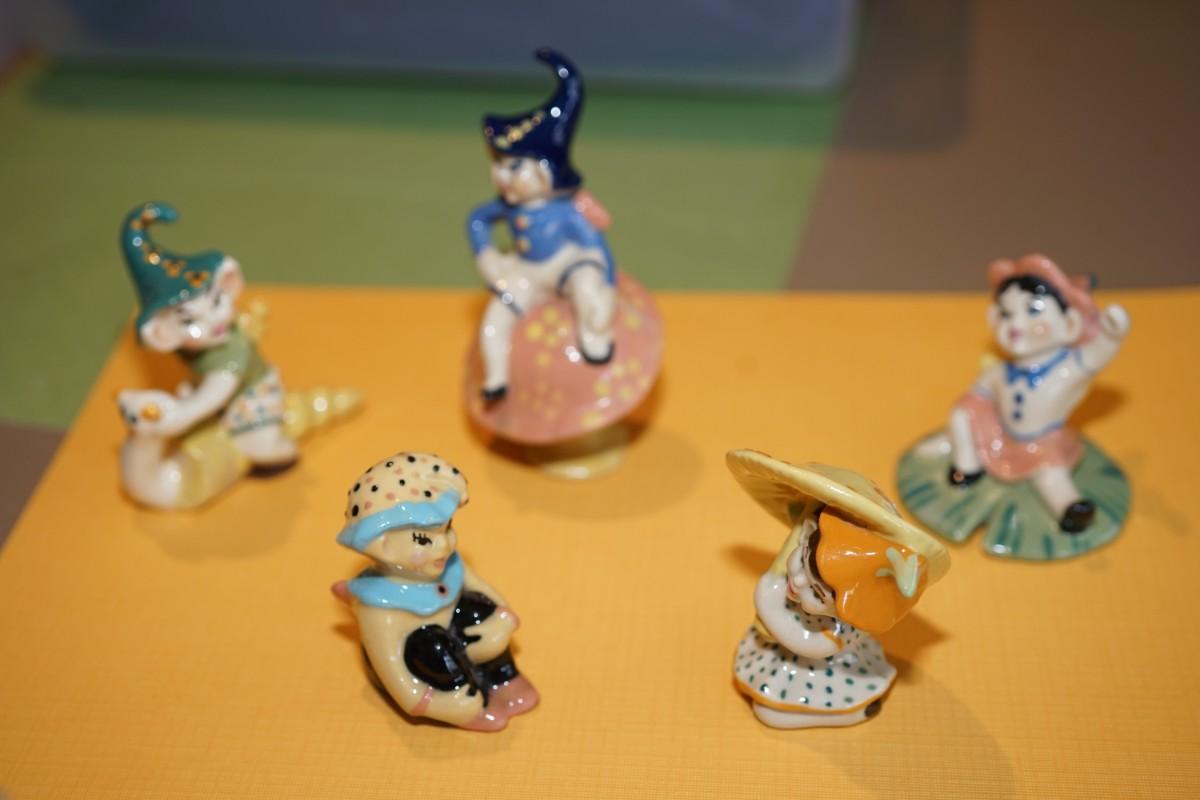 CERAMIC ARTS STUDIO MADISON, WI. PIXIES / FAIRIES AND KNOMES ON MUSHROOM PEDESTALS.