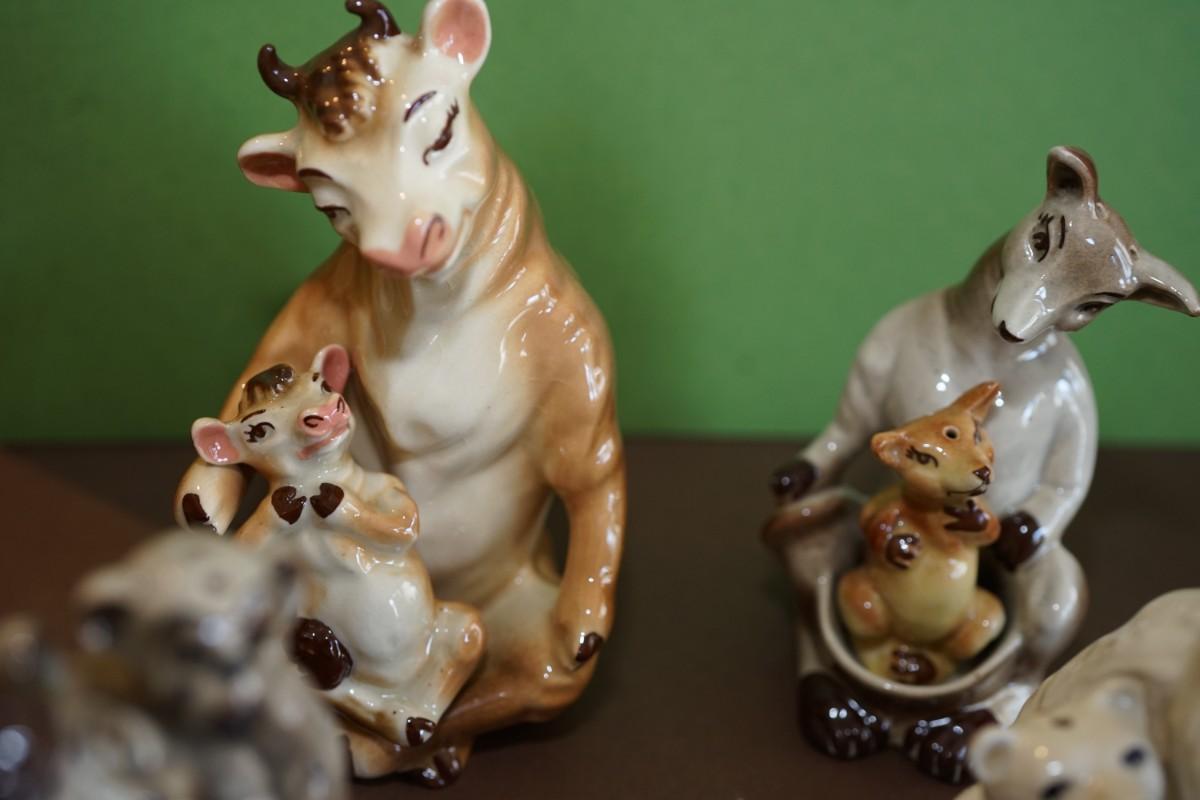 CERAMIC ARTS STUDIO MADISON, WI. STUDIO ANIMAL SALT AND PEPPER PAIRS/MOM W/ BABIES TO INCLUDE COW, KANGAROOM POLAR BEAR , MONKEY