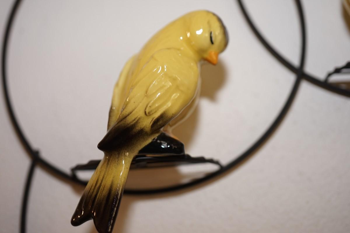 collectible two canaries with a 4" yellow planter to place faux fern