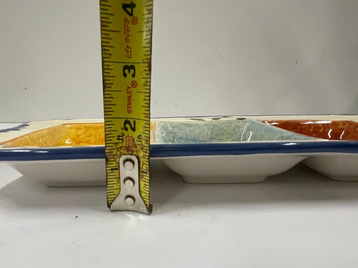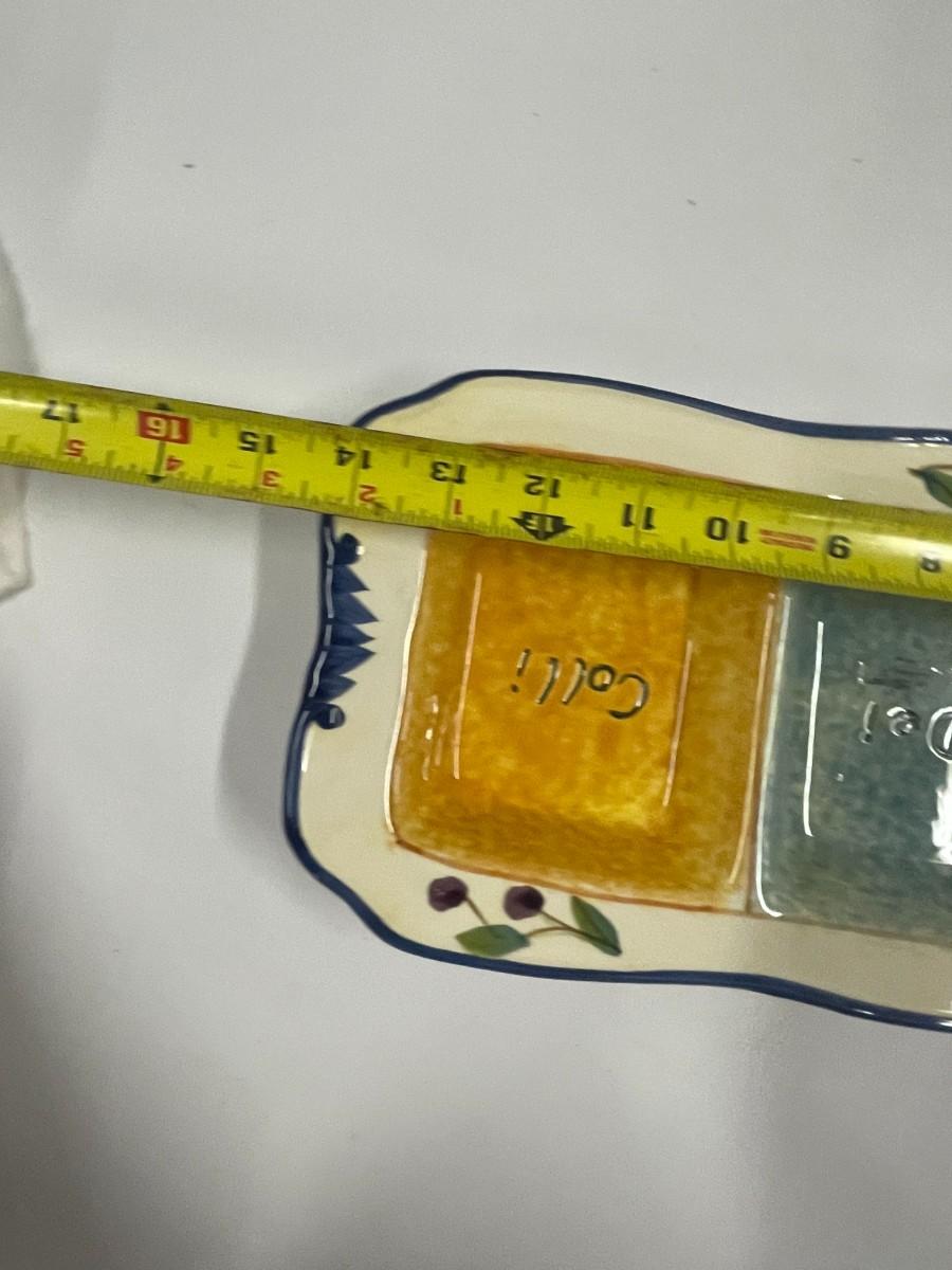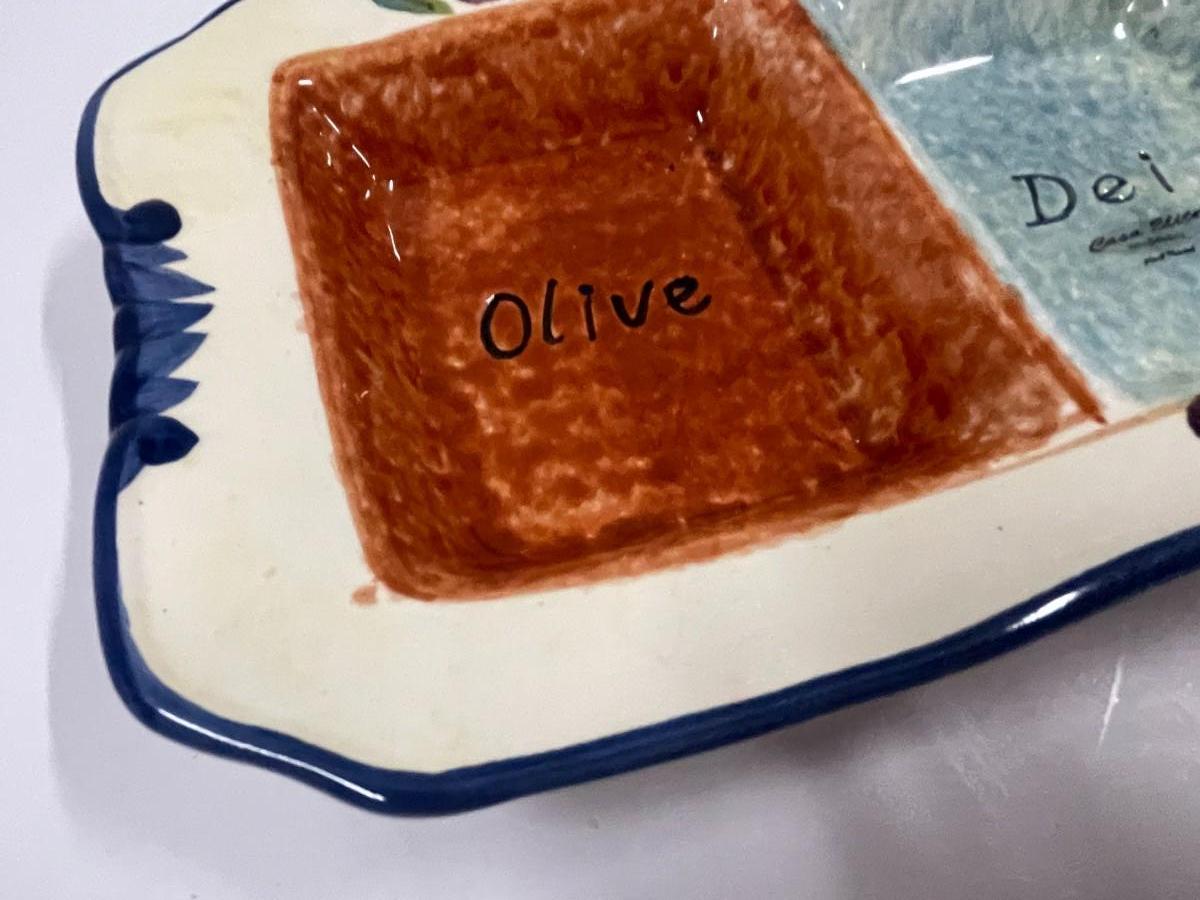 Hand painted ceramic olive platter, 14" long x about 1 1/2" tall.