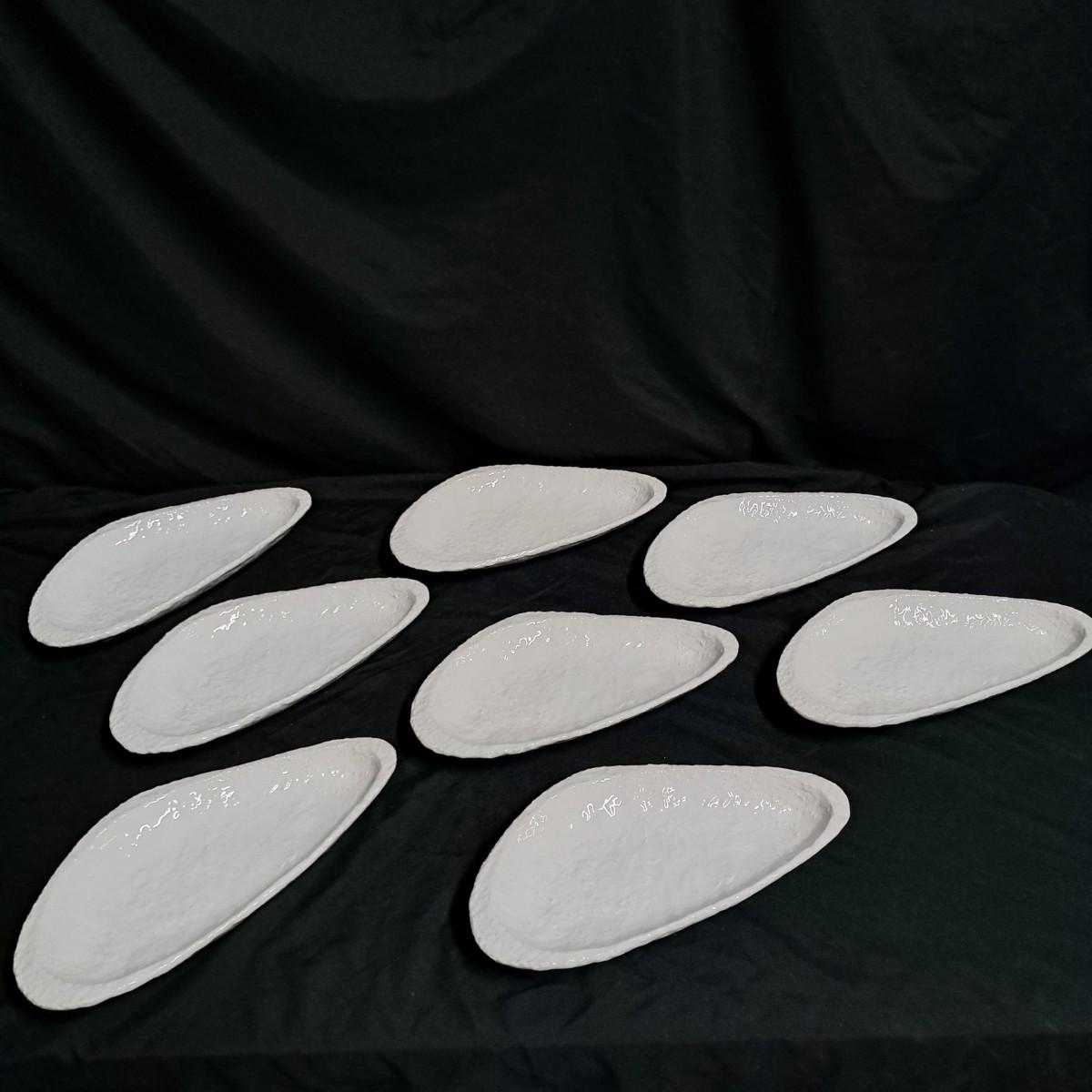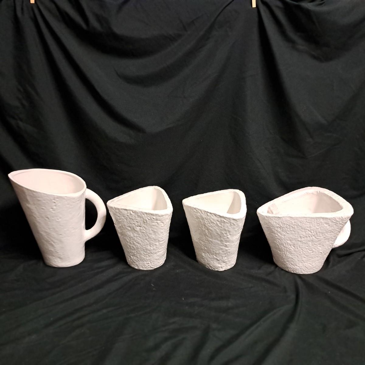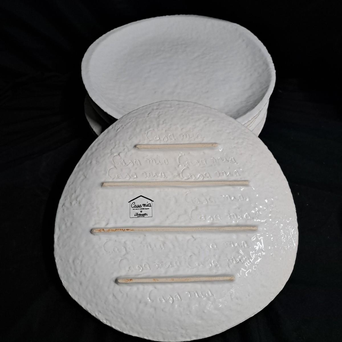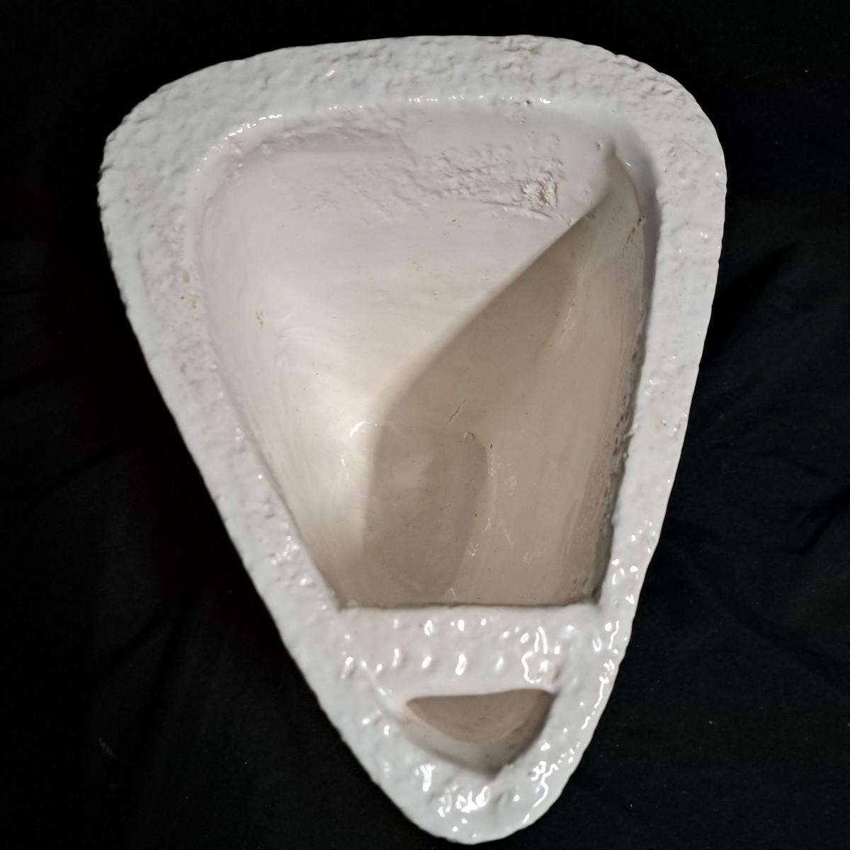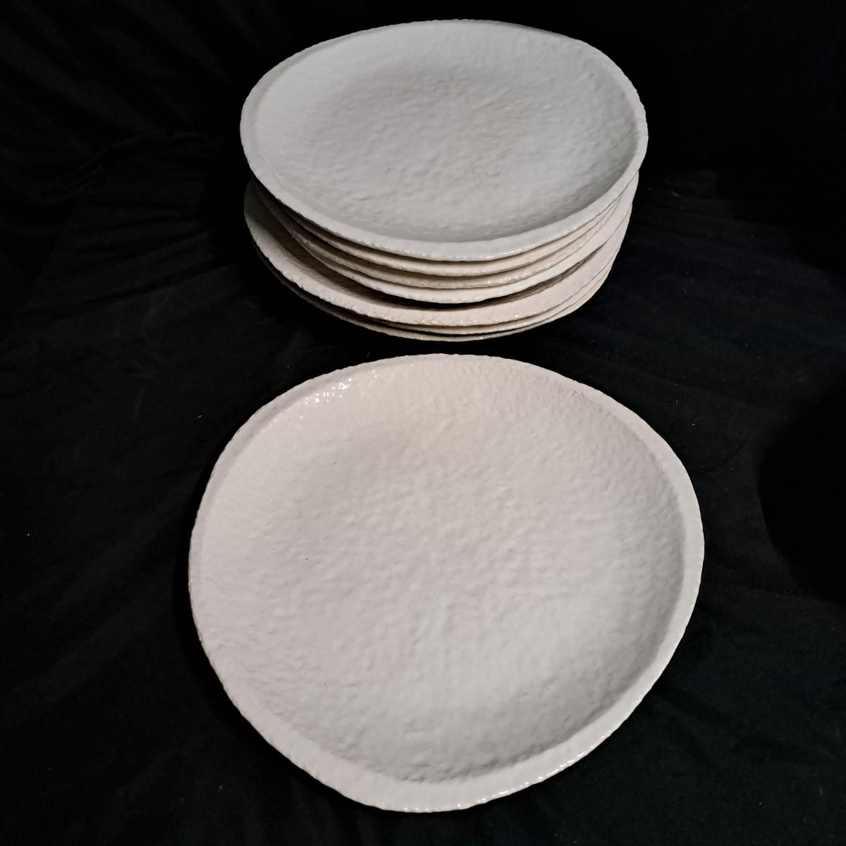 A fabulous set of 58 pieces of Casa Mia, Italian earthenware by Fortunata and designed by Adriano Tolomei, fine Italian ceramics made in Italy. This sculptural set consists of heavy, white glazed ceramics in unique shapes ranging in size from 4"H dessert plates to a pitcher 16"H. Set includes eight dinner plate settings with additional cups, plates, soup bowls, au gratins, pitchers, platters and vases - as well as a large spoon rest. It appears there are no blemishes on any of these pieces. Many are interchangeable as dinnerware pieces or decorative art objects. In addition to their raised ribbed bottoms designed for secure placing they're also dishwasher, oven and microwave safe! Local pickup only.
