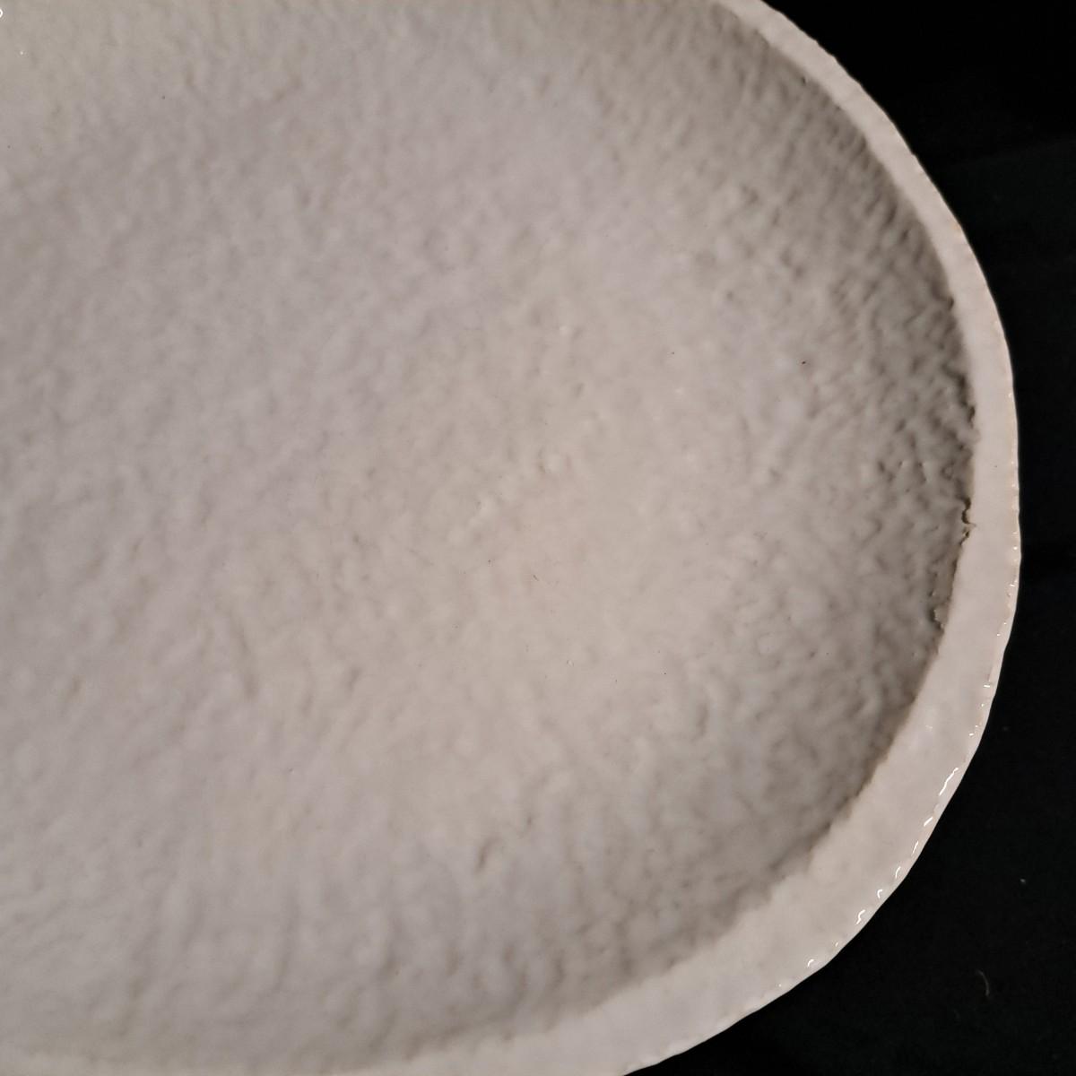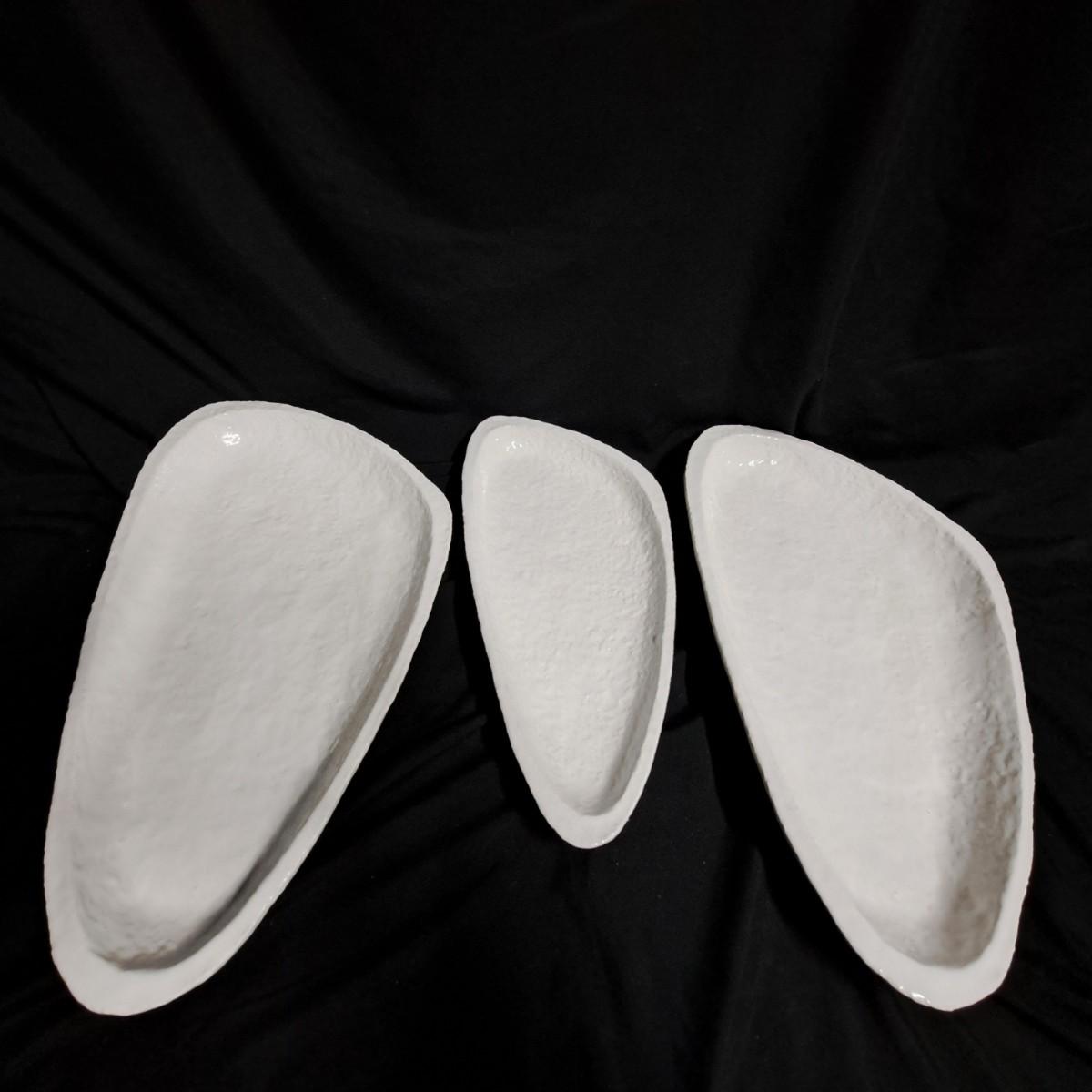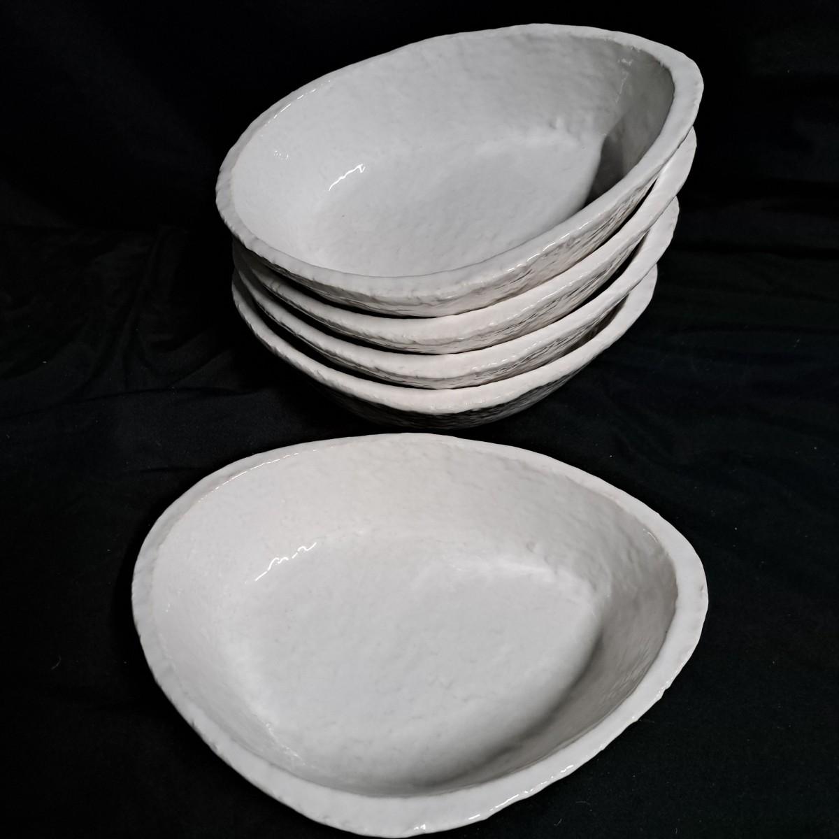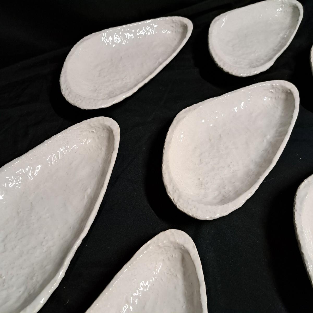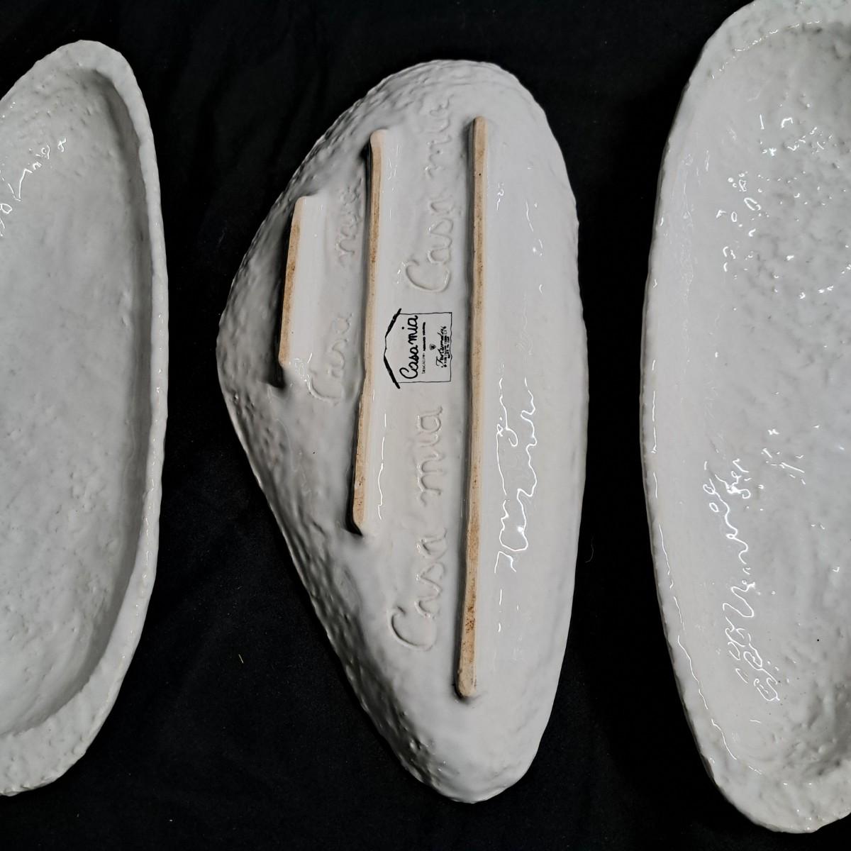 A fabulous set of 58 pieces of Casa Mia, Italian earthenware by Fortunata and designed by Adriano Tolomei, fine Italian ceramics made in Italy. This sculptural set consists of heavy, white glazed ceramics in unique shapes ranging in size from 4"H dessert plates to a pitcher 16"H. Set includes eight dinner plate settings with additional cups, plates, soup bowls, au gratins, pitchers, platters and vases - as well as a large spoon rest. It appears there are no blemishes on any of these pieces. Many are interchangeable as dinnerware pieces or decorative art objects. In addition to their raised ribbed bottoms designed for secure placing they're also dishwasher, oven and microwave safe! Local pickup only.
