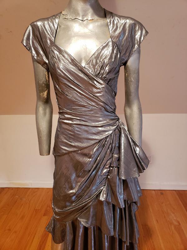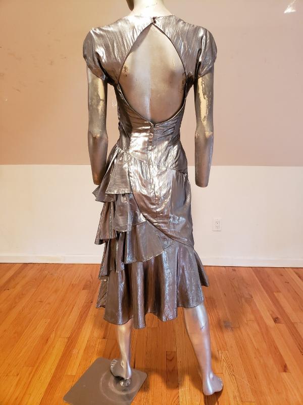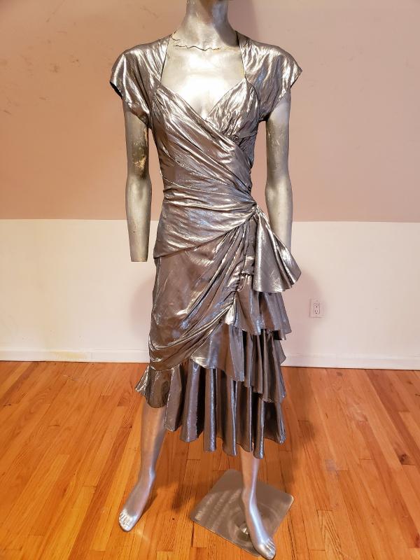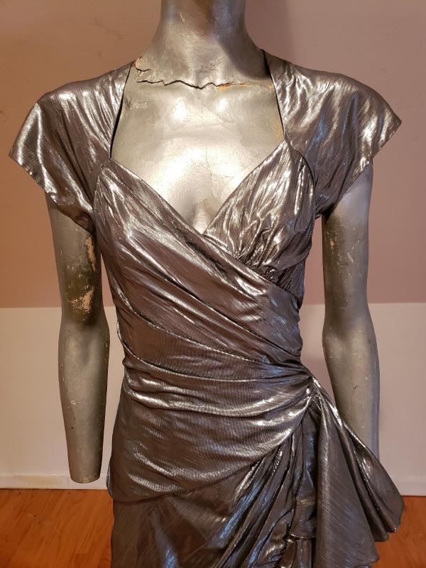 Amazing beauty signed by CASADEI 1982. Disco Avant Garde silver lame draped pleated dress. Stunning with amazing details. quite Rare.. Dramatic side swags, backless open design. Will fit a size S/M
