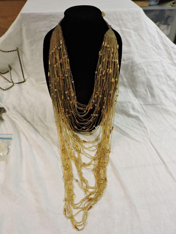 Beautiful statement piece! Cascading multi-strand necklace hangs down 28". Just stunning! **Please read terms and conditions prior to bidding.