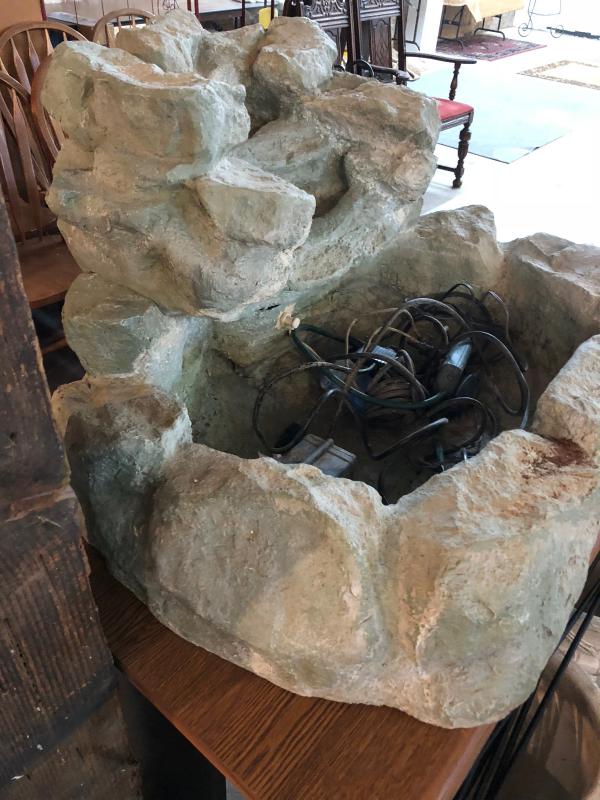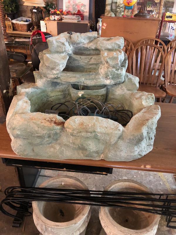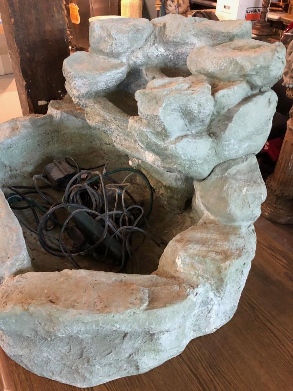 Working when removed here is a 3-tier cascading rock garden pond for your garden...Resin construction..Includes pump...35 x 20"h...