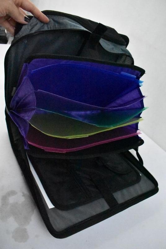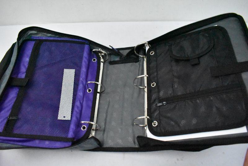 Case it Dual D Ring Zip Backpack Binder, 2 sets of 2 inch rings, Purple/Black/Green - New