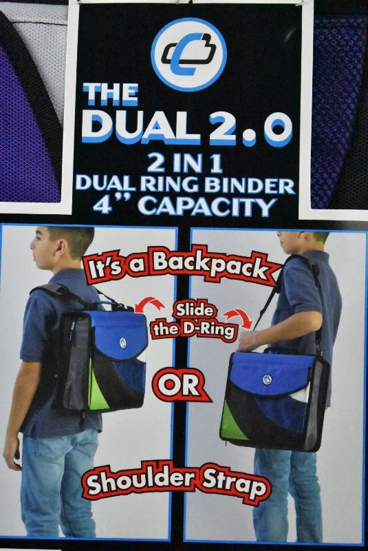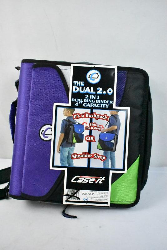 Case it Dual D Ring Zip Backpack Binder, Two 2" Rings, Purple/Black/Green - New
