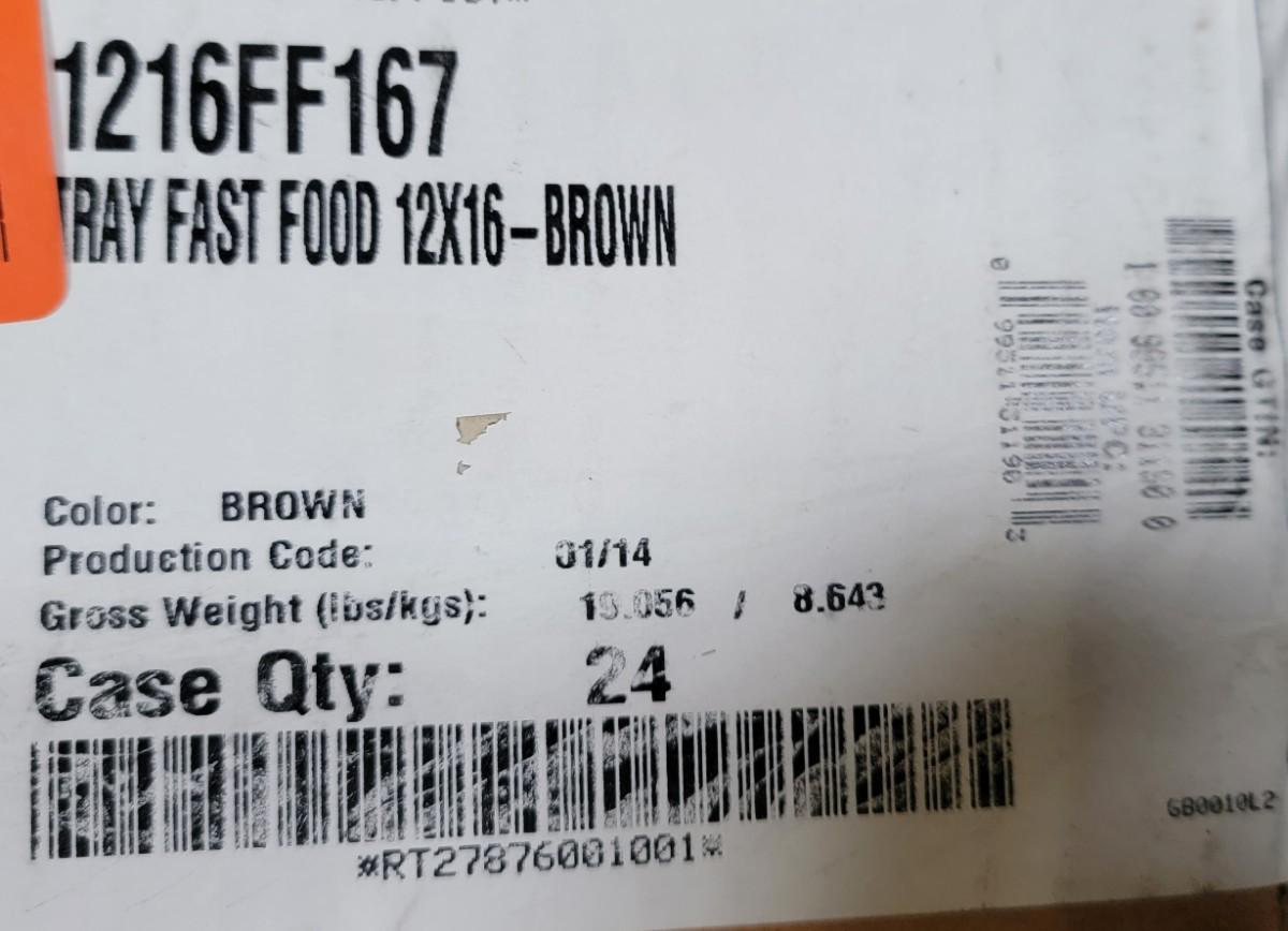 Case of 24 Cambro Brown Trays, 16" x 12"