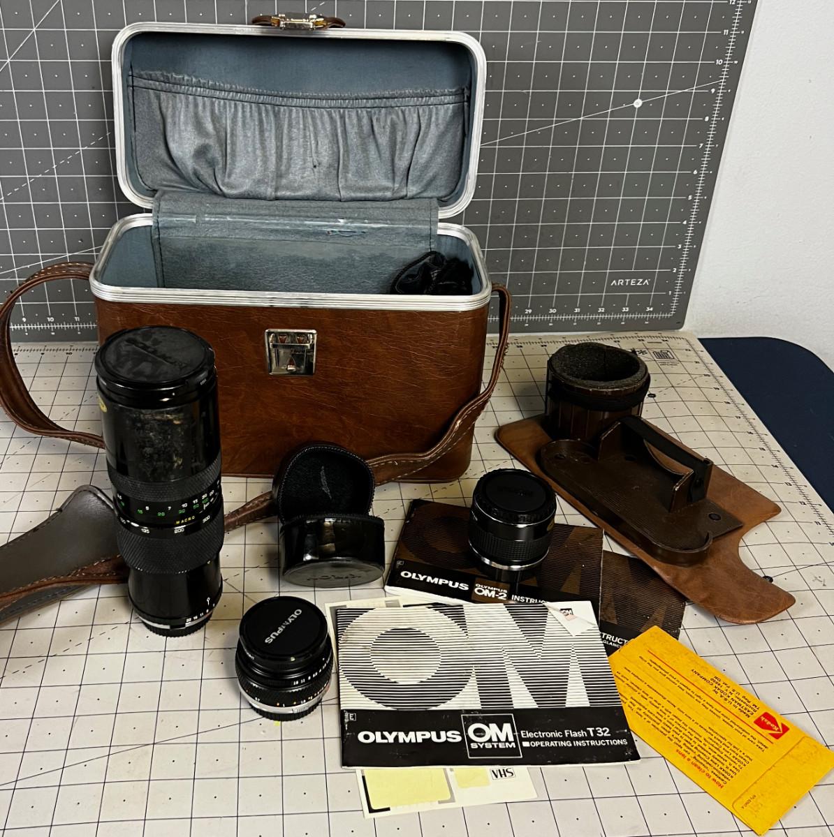 Case with an Olympus OM2 Lenses