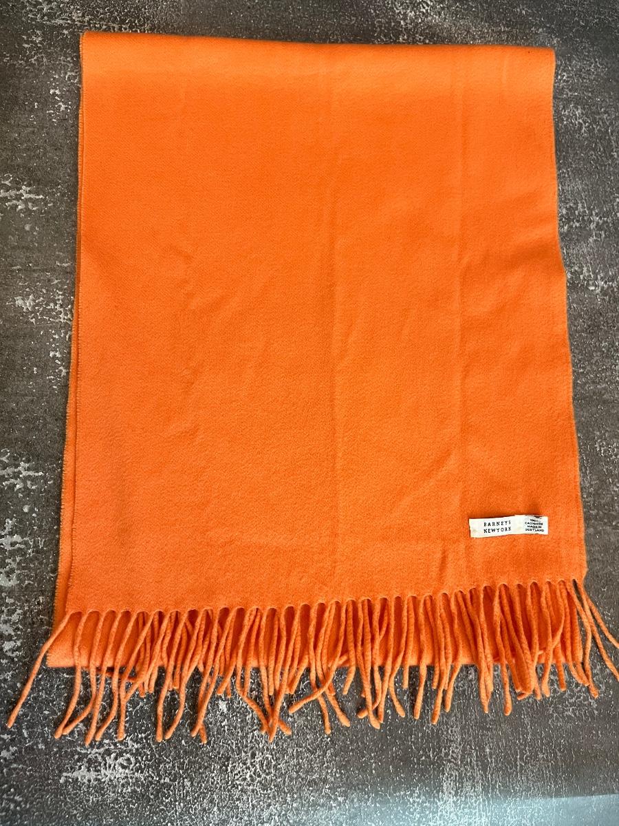 Cashmere rectangular shawl, soft orange, Barney’s New York 14” x 72”