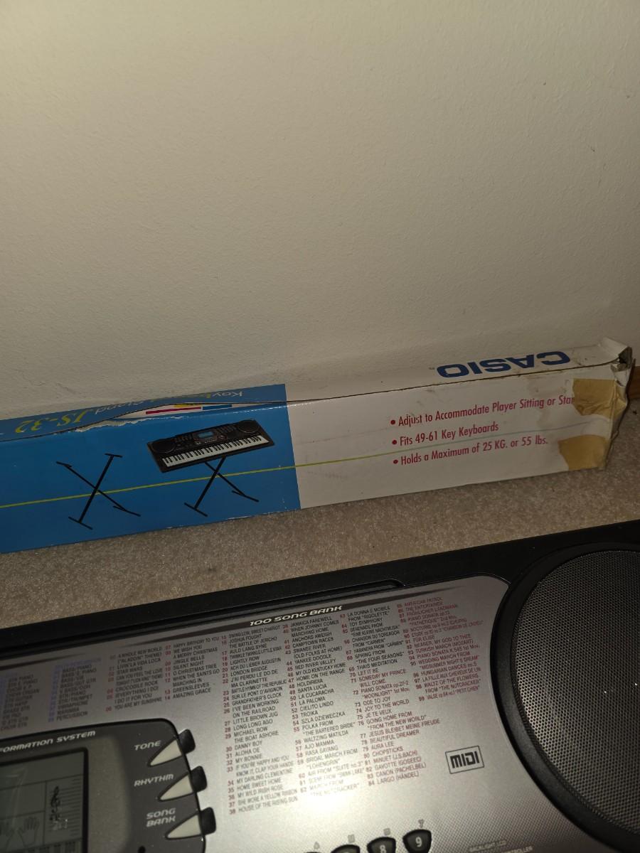 Comes with user guide and stand and is ready to use at your house. 38 inches wide and 14 deep.