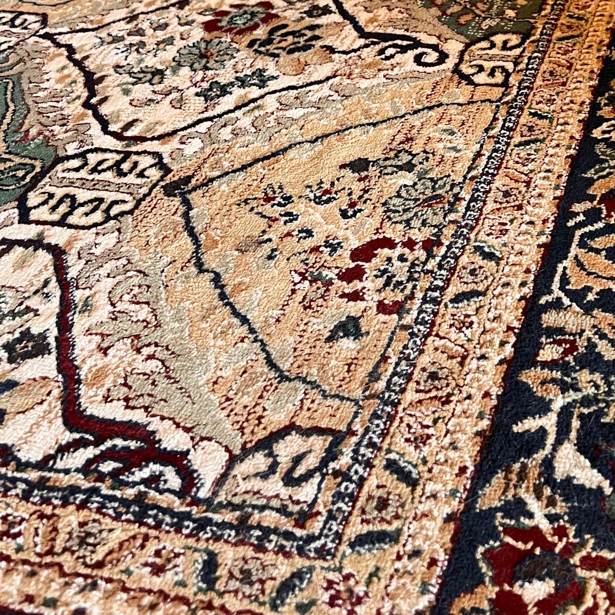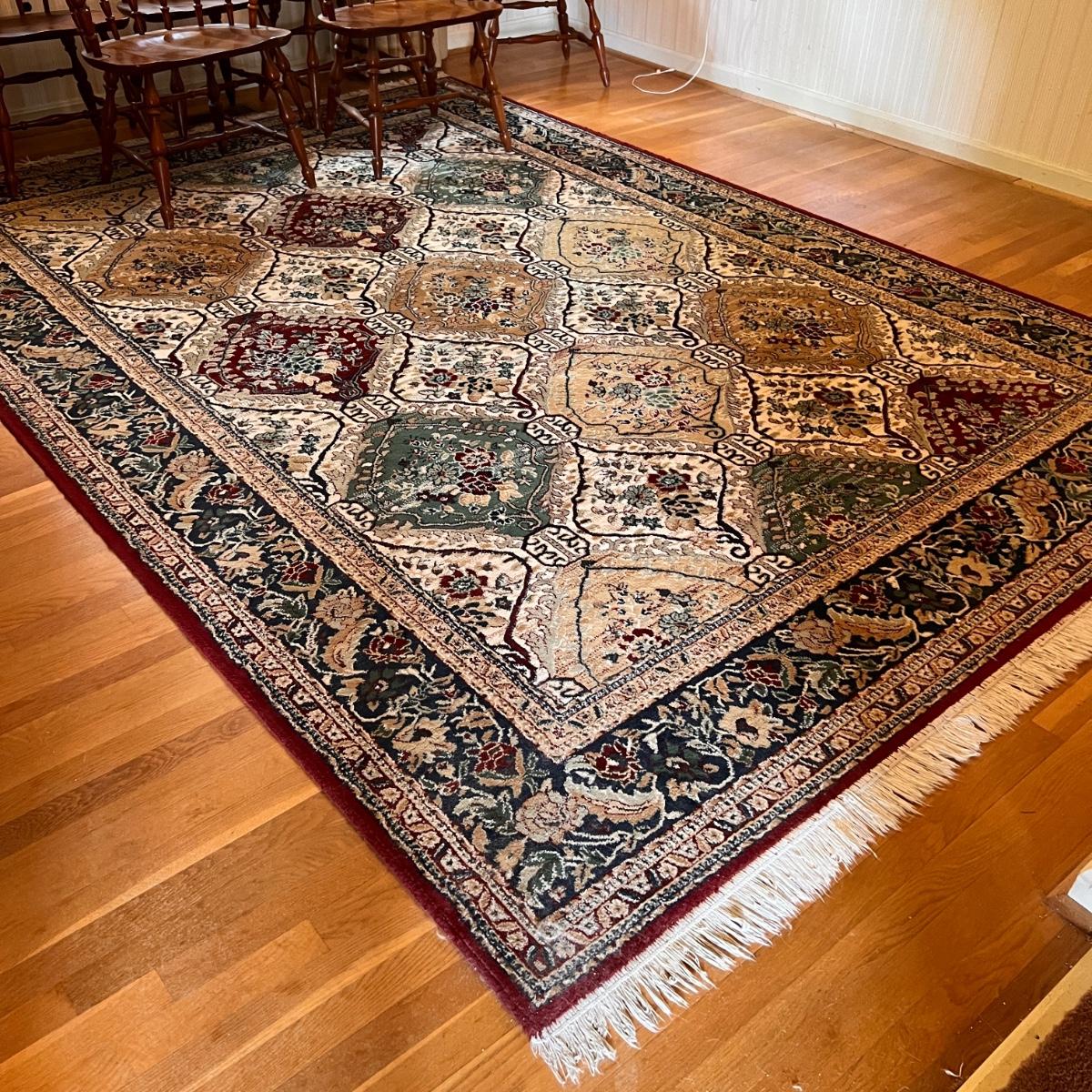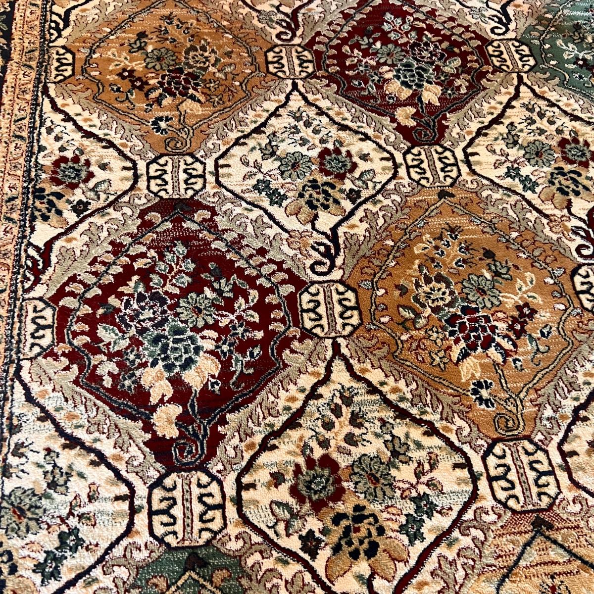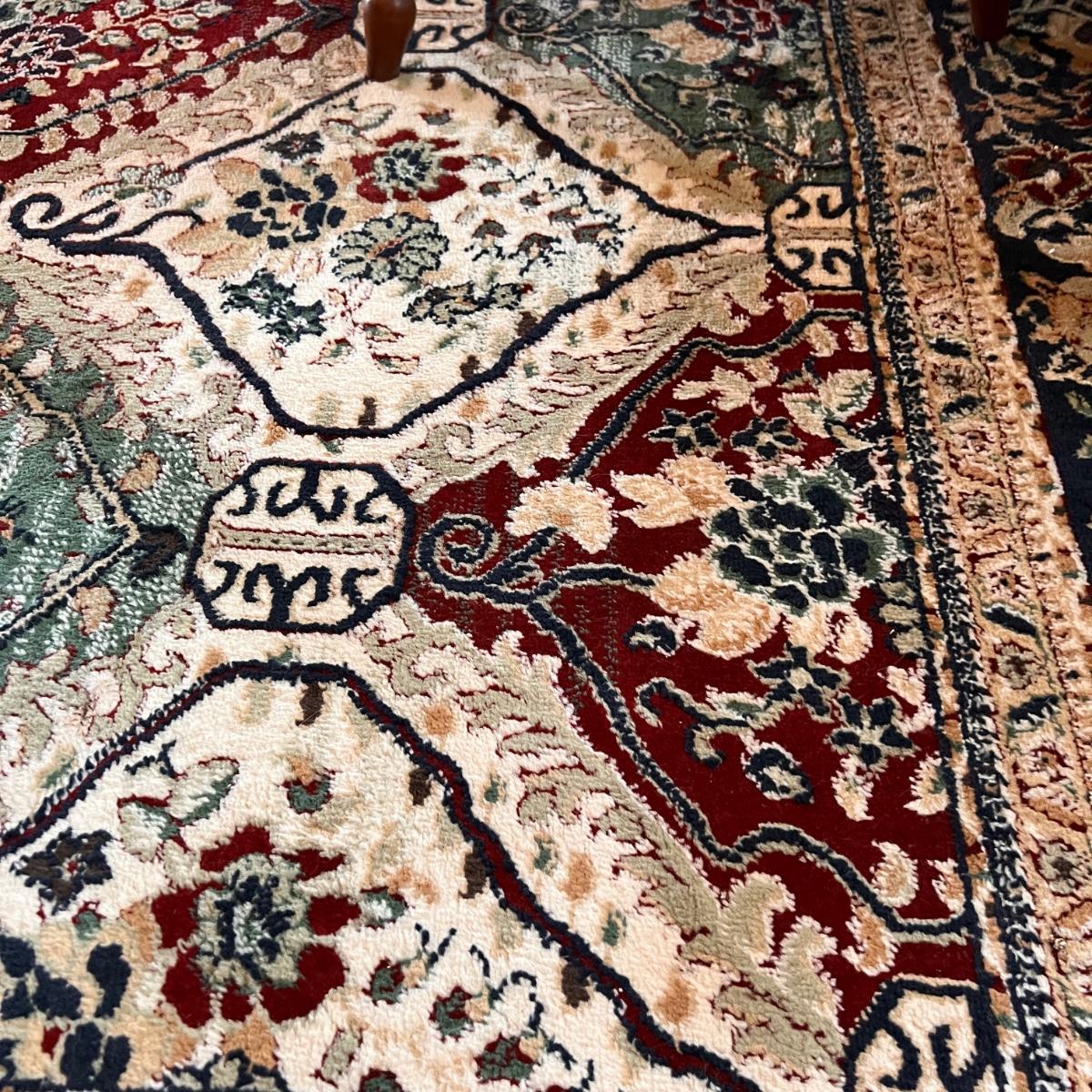 This rug is in well maintained condition. Clean and gently used. It was under a formal dining room table.