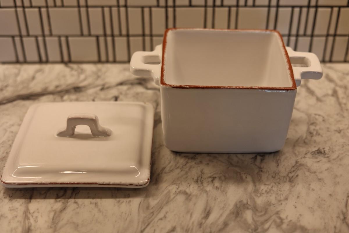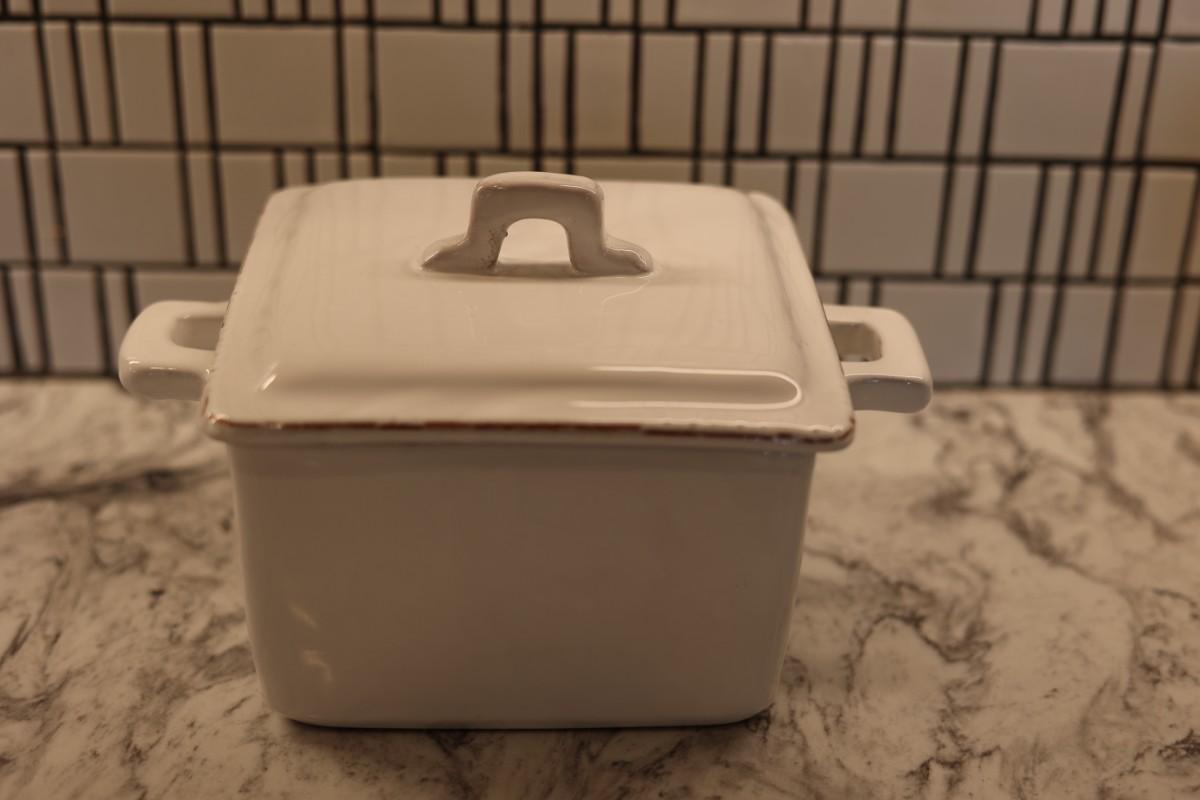 2 quart square casserole with ceramic lid made by Vierti from Italy.