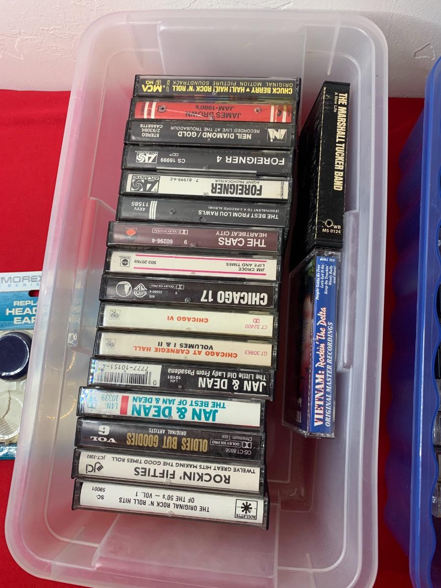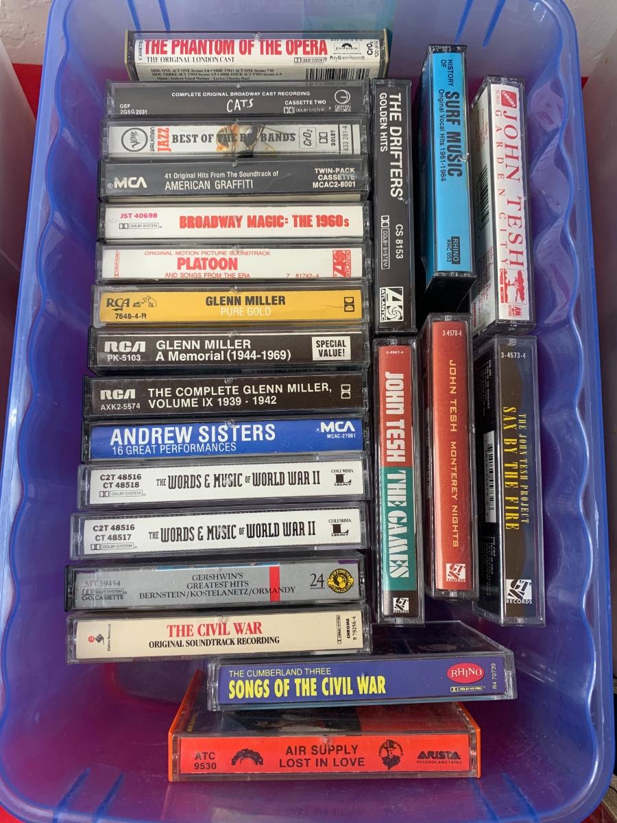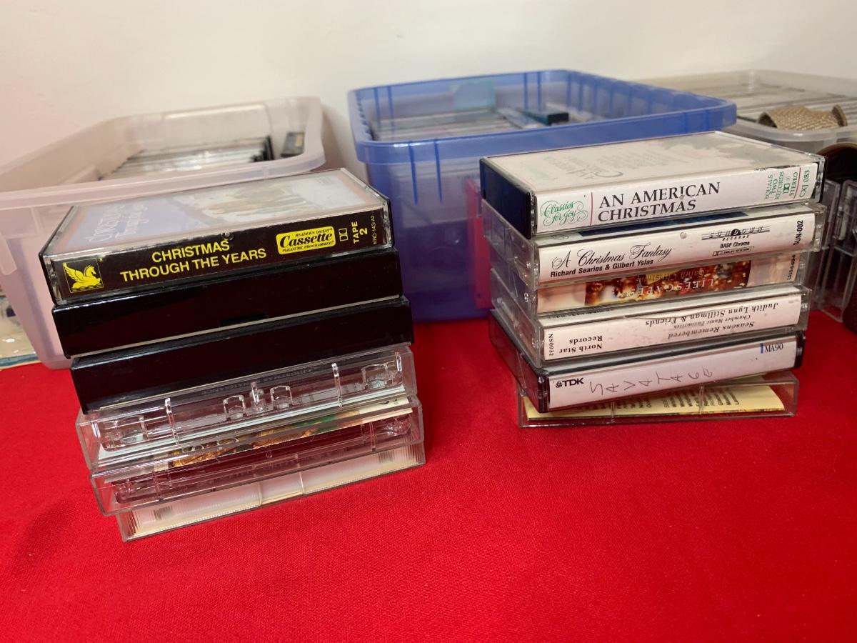 Lot includes 3 boxes of cassettes, along with a soft side case and loose Christmas albums. Includes Garth Brooks, Willie, Fleetwood Mac, Glenn Miller, Charlie Daniels, and more!